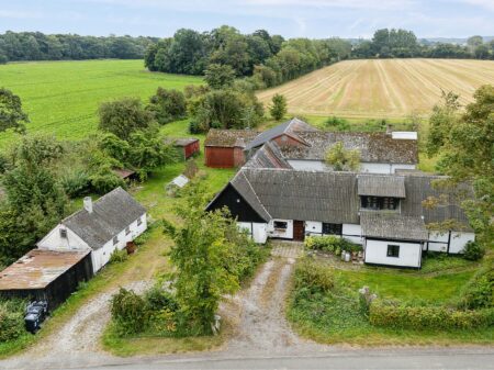 Hyggelig og velholdt firelænget bondegård med to boliger, udbygninger og 2 ha j…