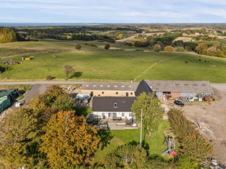 Råhovedgård ligger med i sine 3 ha, helt fantastisk og ugeneret med Råhoved Sko…