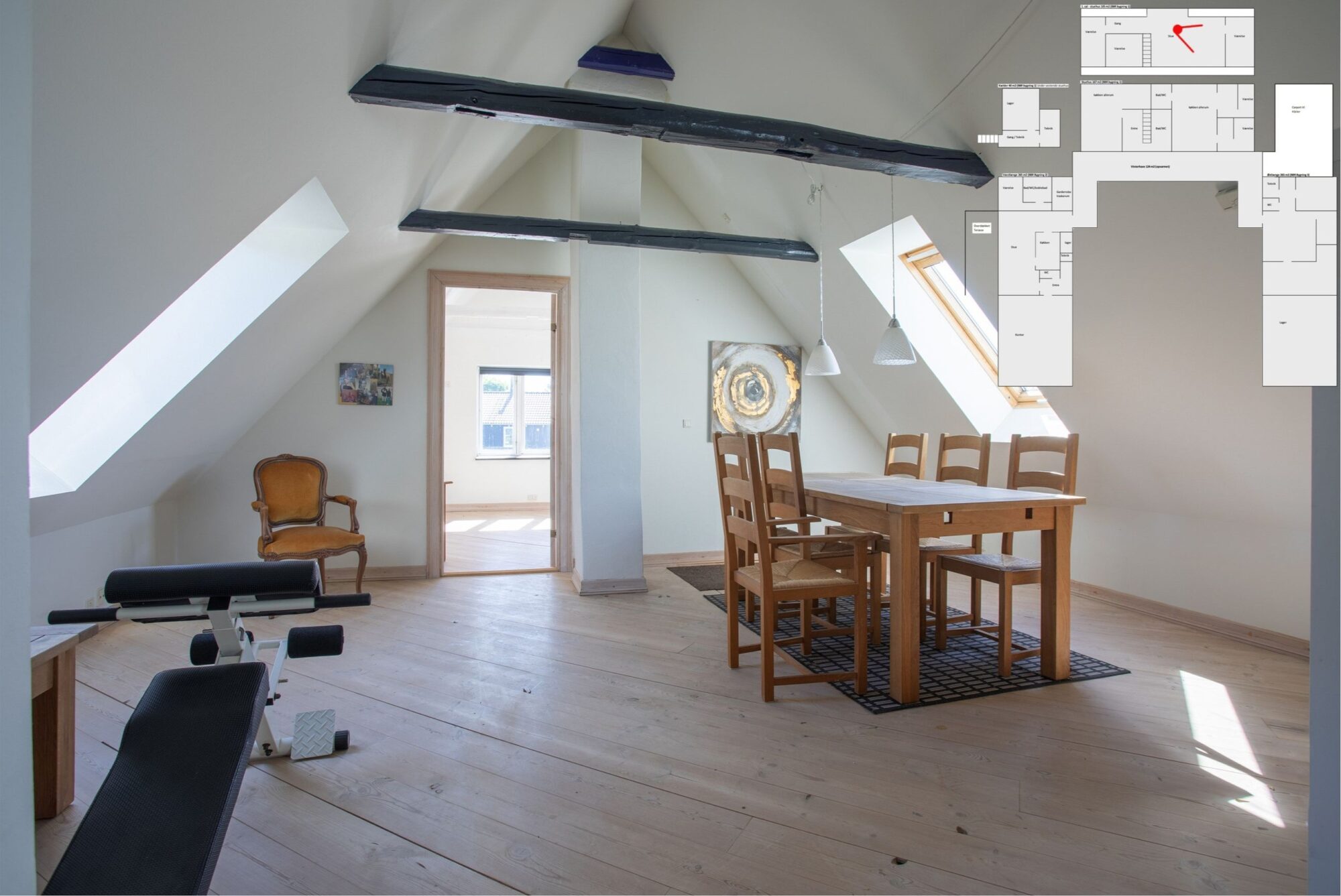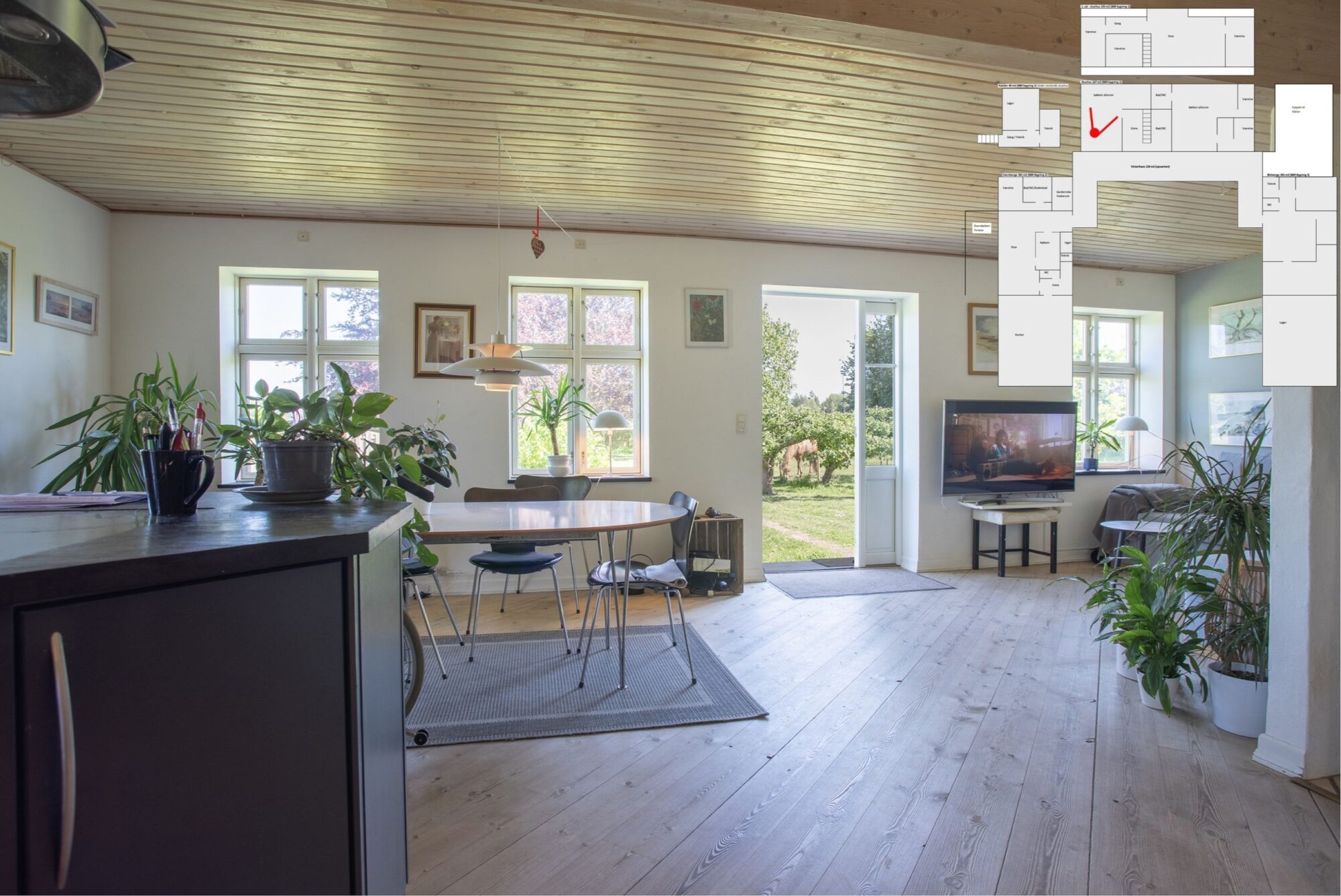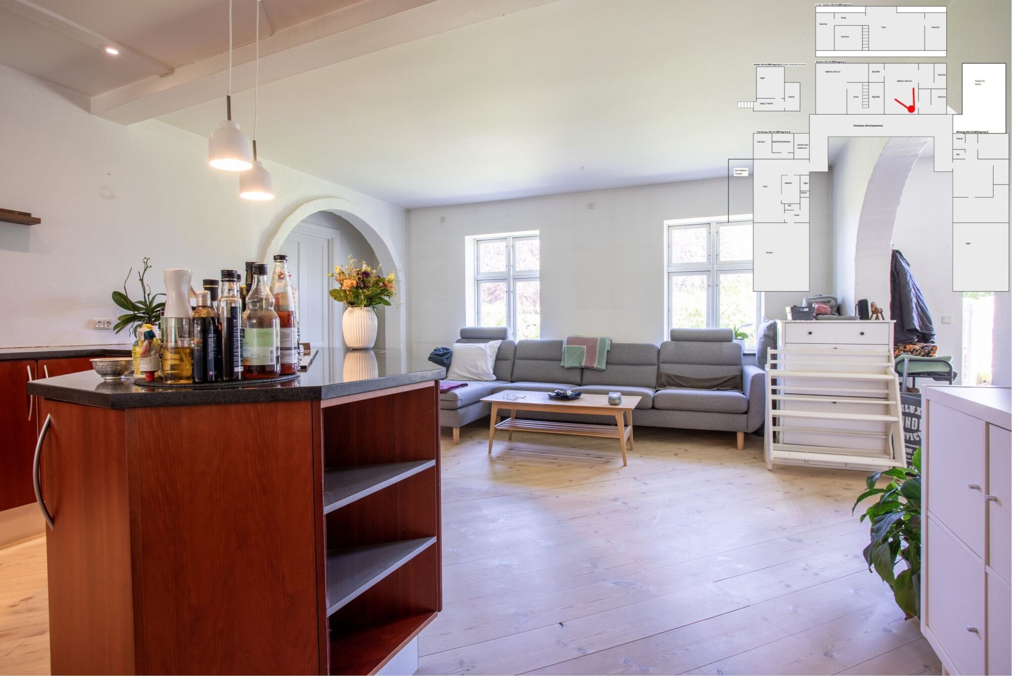 Med tre køkkener, tre badeværelser og gulvvarme overalt får du moderne komfort – ideelt til den store familie, generationsbolig eller udlejning.