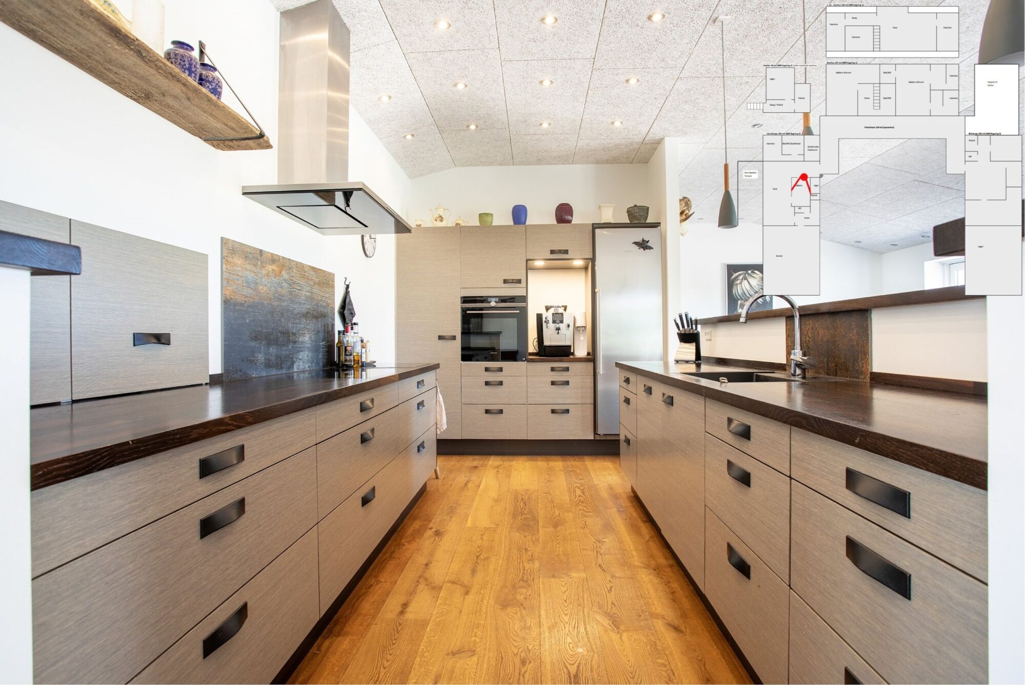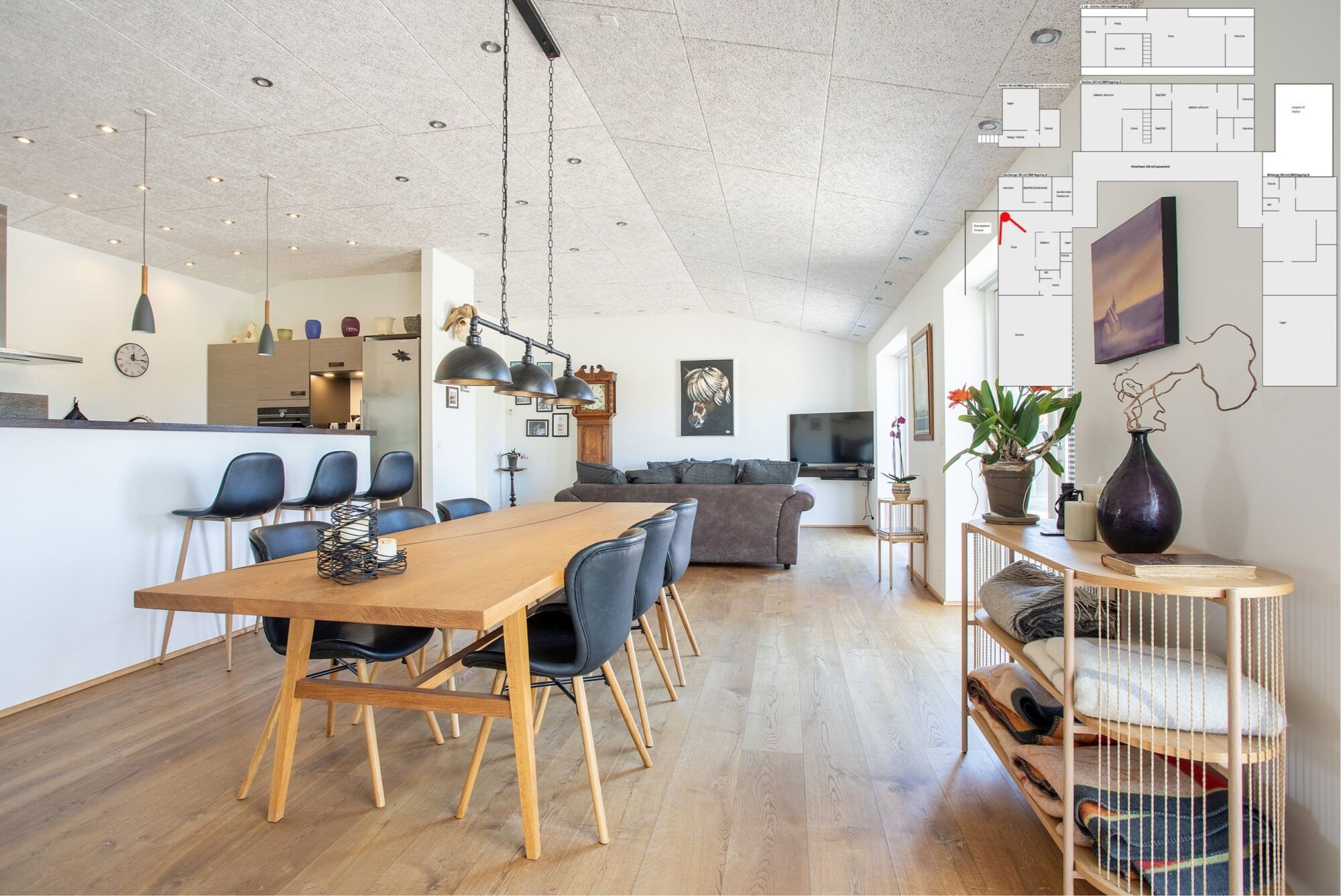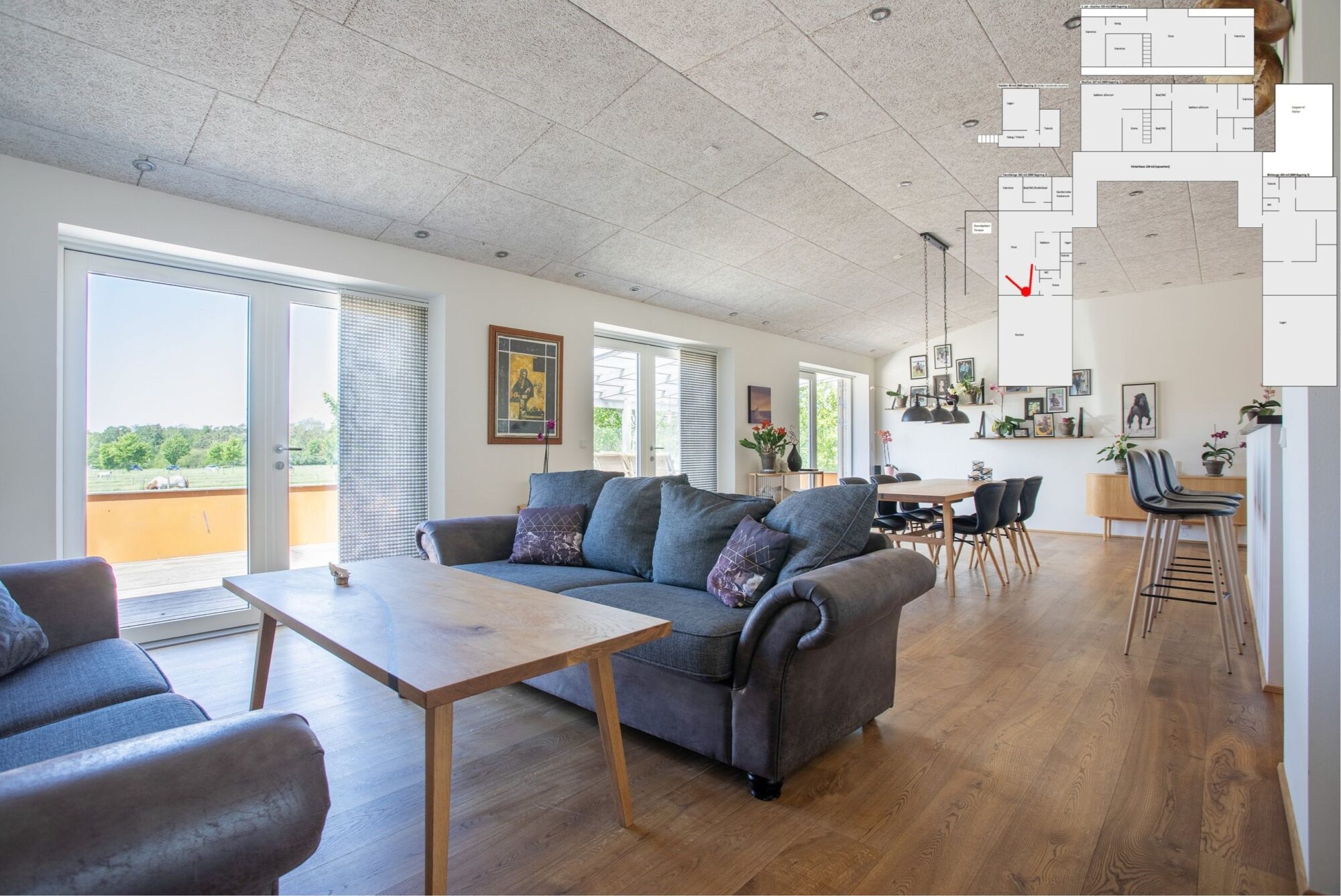 Med tre køkkener, tre badeværelser og gulvvarme overalt får du moderne komfort – ideelt til den store familie, generationsbolig eller udlejning.
