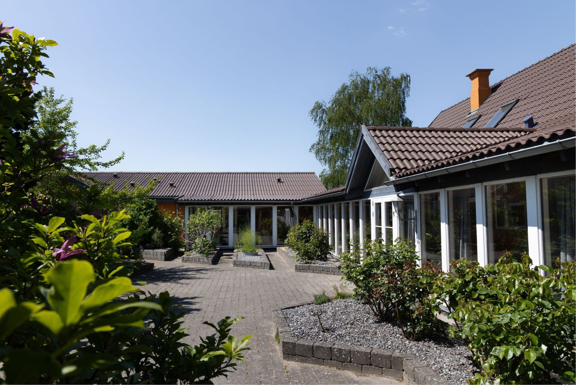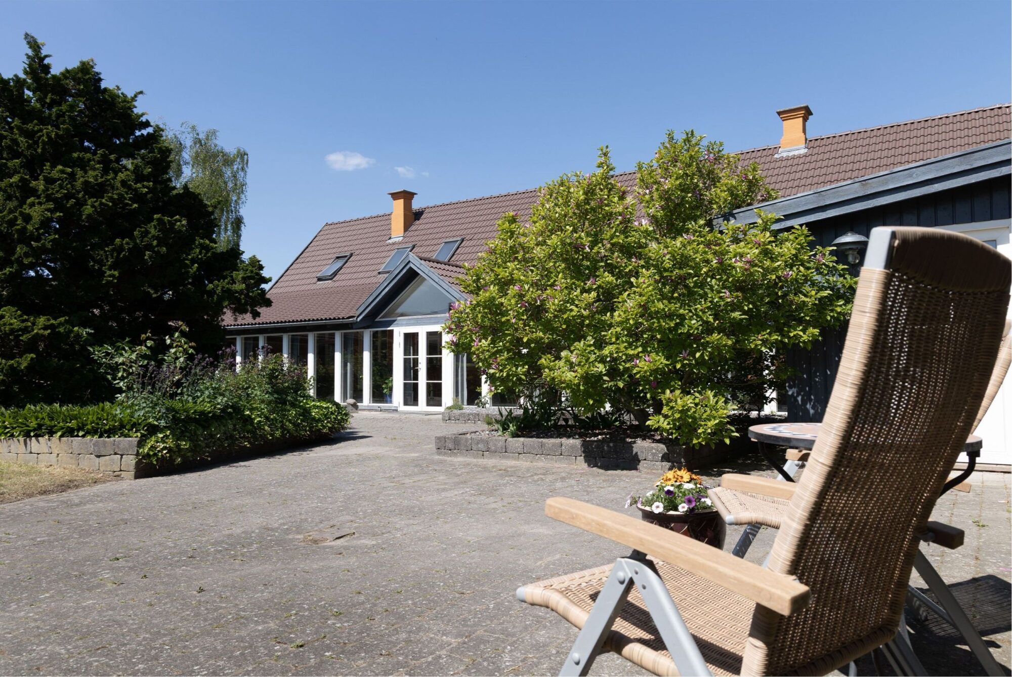 En naturskøn og vedligeholdelsesvenlig oase med smukt anlagt gårdsplads, samt et udvalg af særlige træer – blodbøge, kastanjer, ægte kastanje, figen, magnolier, valnød og frugttræer. Hele ejendommen er opført i kvalitetsmaterialer med lavt vedligeholdelsesbehov, så du kan bruge din tid på det, du holder af.