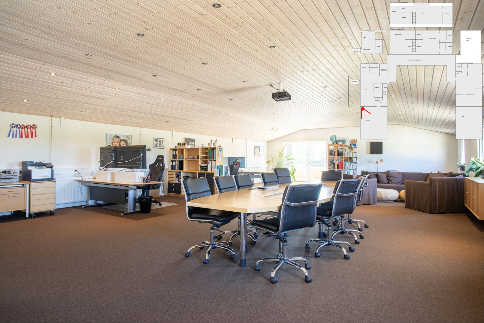 Der er i øjeblikket tre erhvervslokaler på ejendommen. Et lagerlokale på 116m2, en klinik eller kontor på 149 m2 og et kontor på 116 m2. Klinik og kontor er renoveret i 2017. Perfekt til liberalt erhverv, hjemmearbejde eller udlejning.