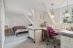 Stuehuset er virkeligt flot, lyst og tidssvarende, og fordelt på to etager. Den familievenlige planløsning rummer blandt andet tre soveværelser (hvor det ene oprindeligt har været to), der alle er etableret på førstesalen. Værelserne er store og har en fritliggende charmerende bjælkekonstruktion. 1.salen indeholder derudover et walk-in-closet og et badeværelse samt en møblerbar repos.