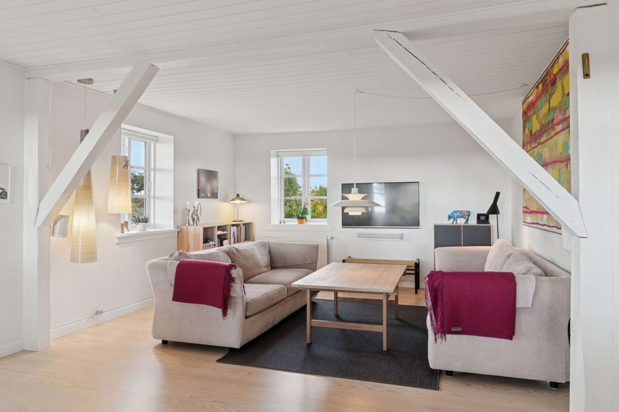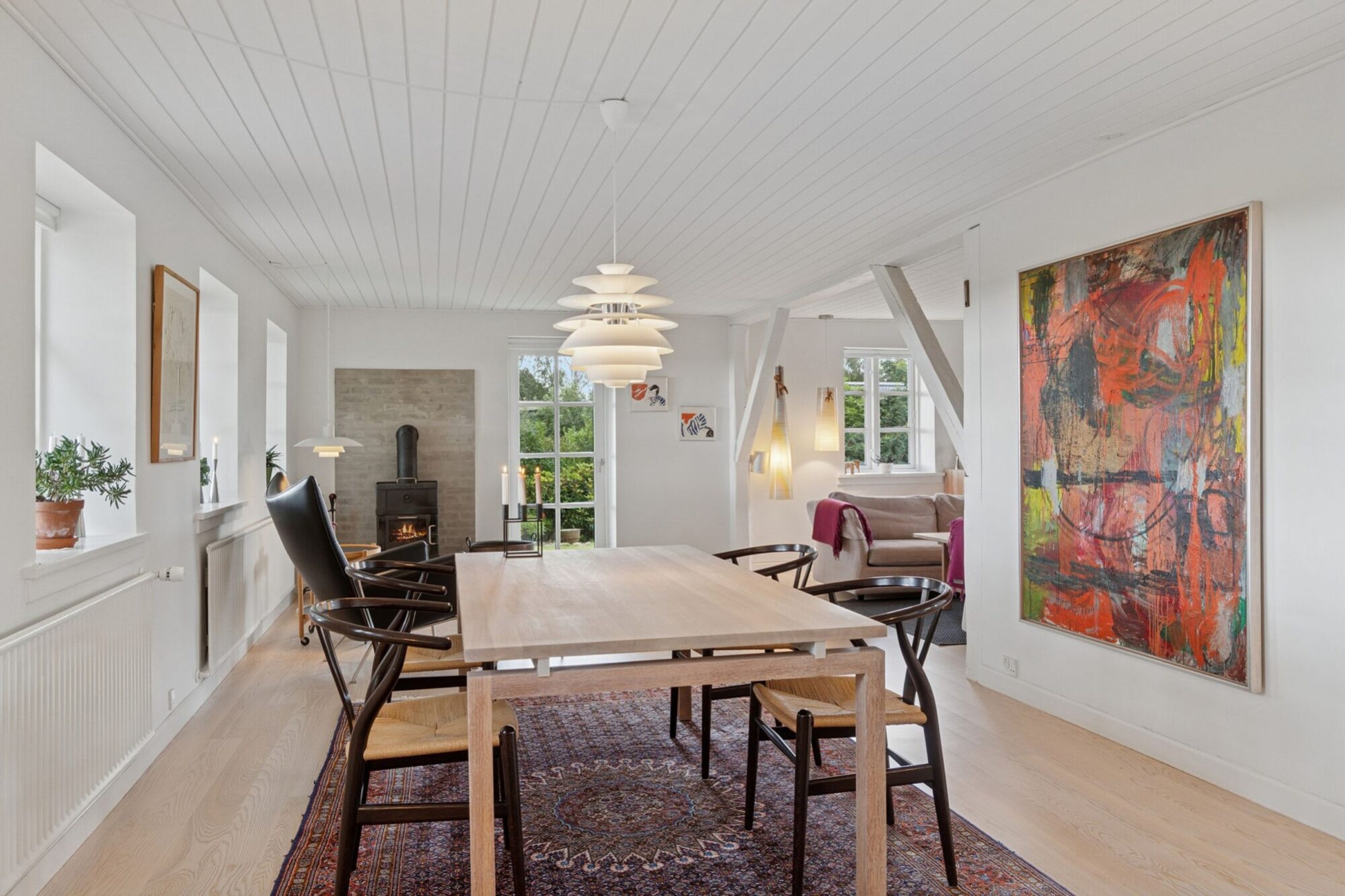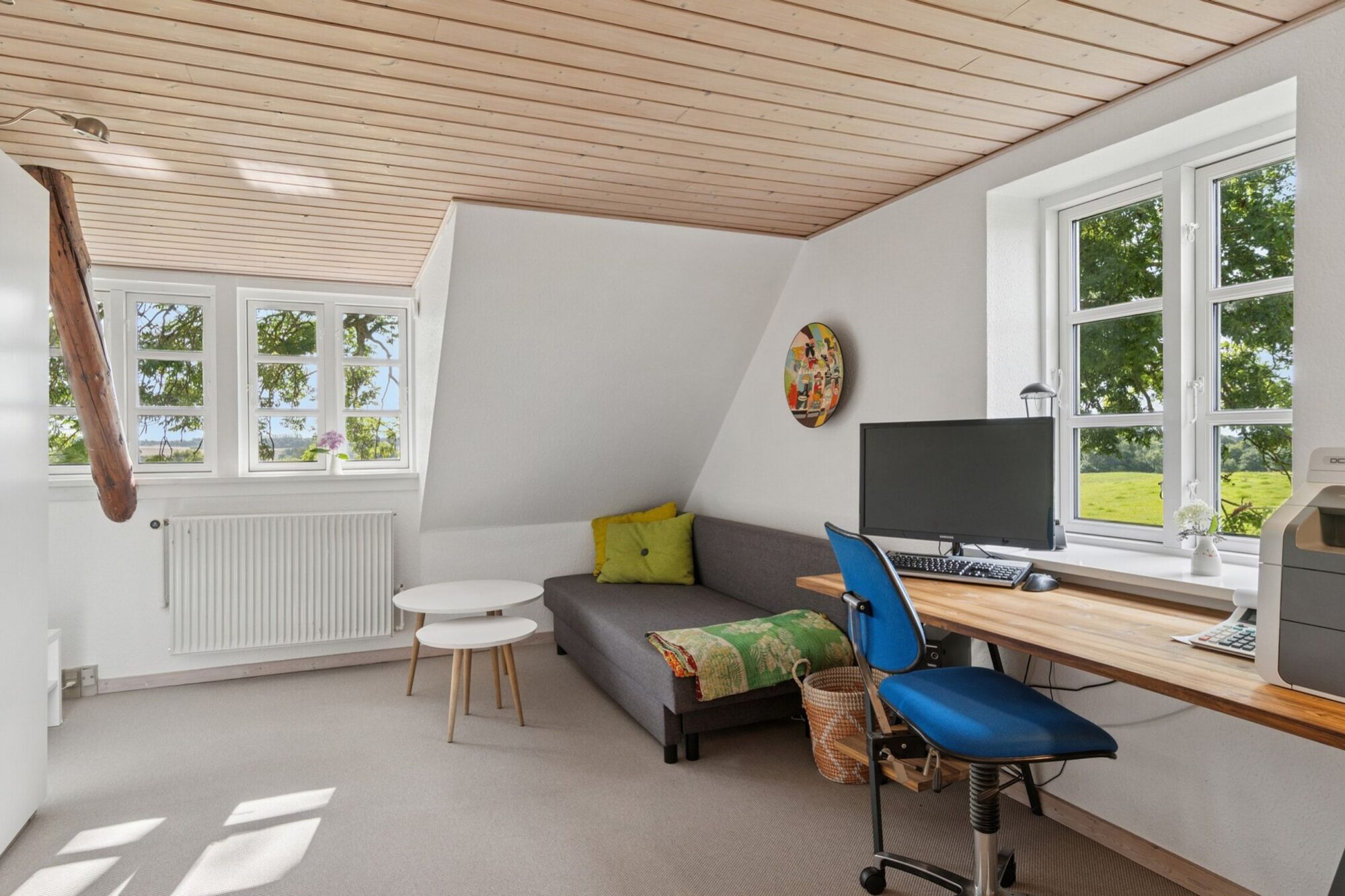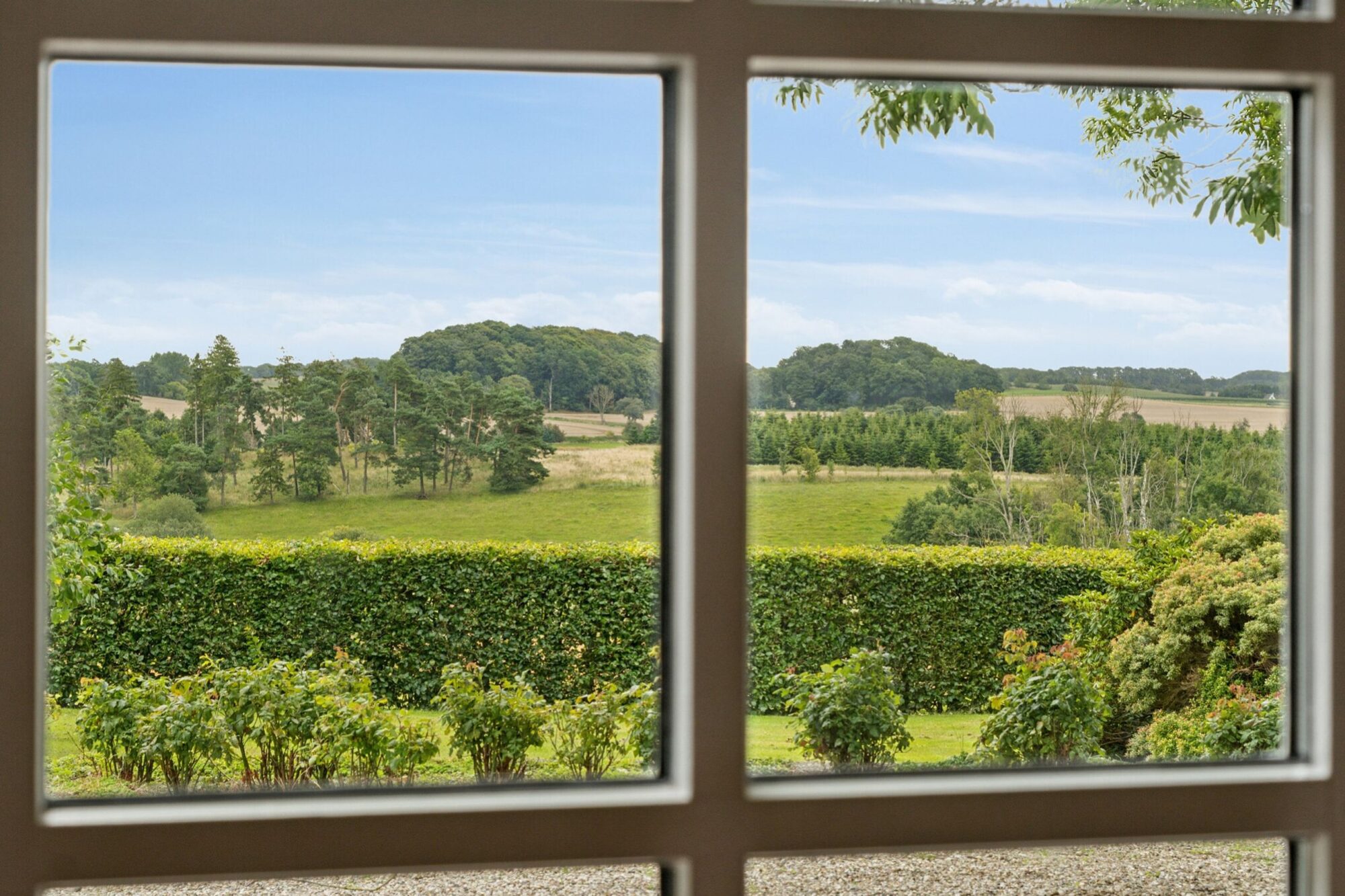 Det er ikke mange landejendommen, der byder på en så skøn udsigt, som det er tilfældet her på Fagerholtvej 19 ved Skibby. Gården ligger højt i terrænet – så både inde og udefra får I glæde af frit udsyn over det smukke landskab.