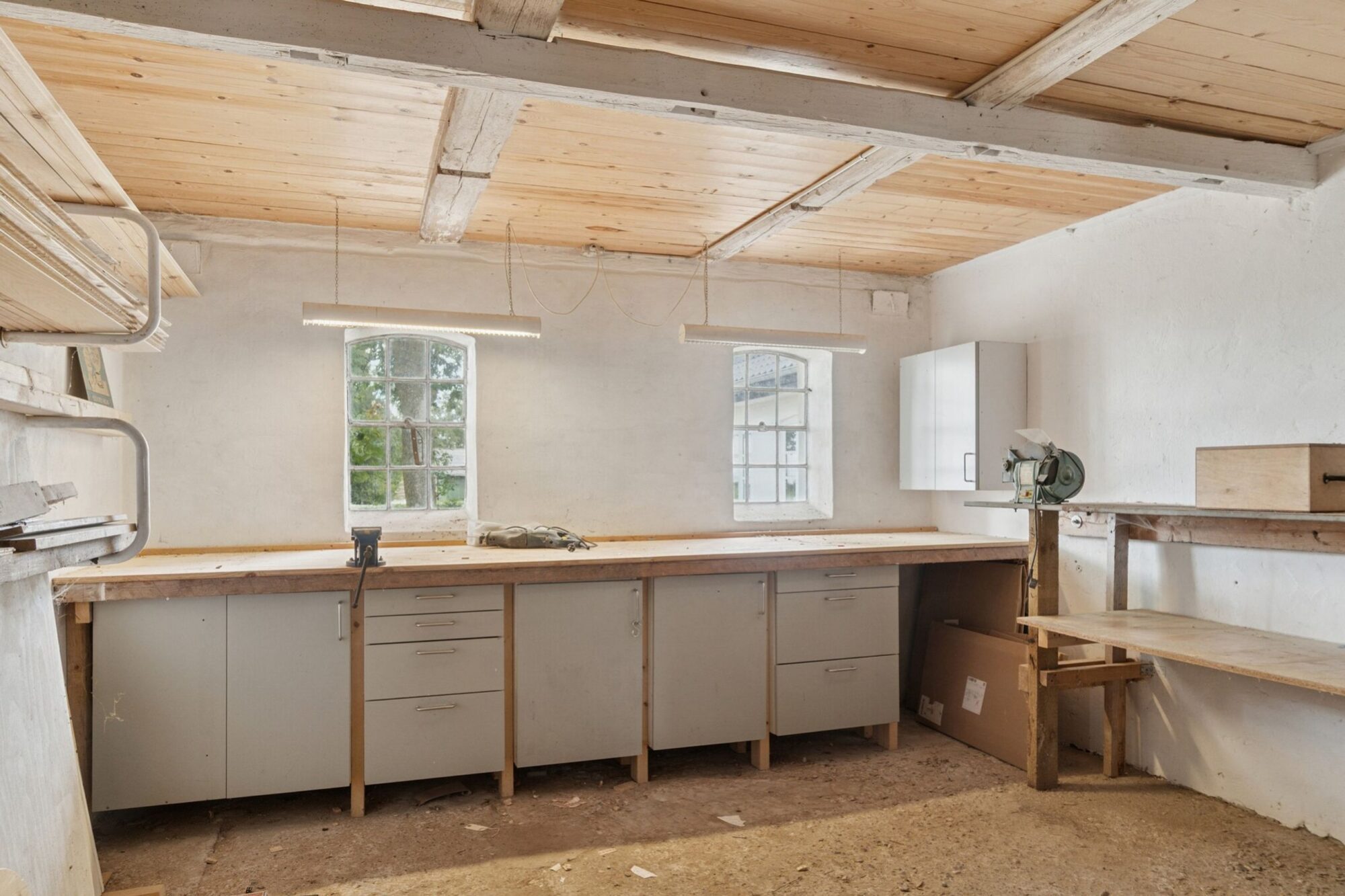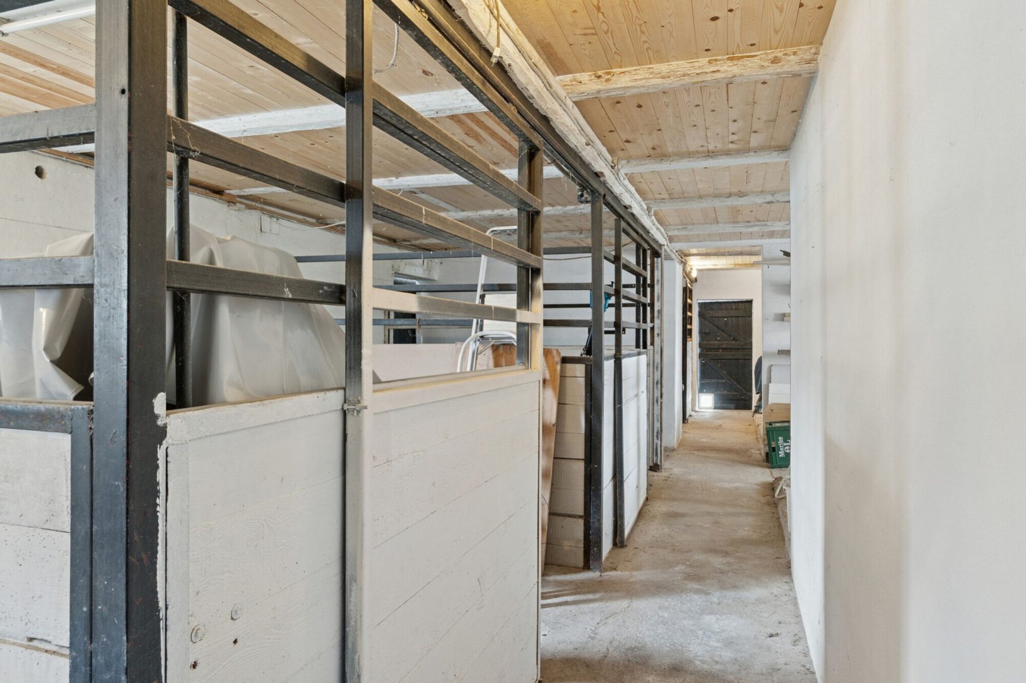 Ejendommen er oprindeligt bygget tilbage i 1920, og den fremstår særdeles velholdt. Selve boligen er på 157 kvm, og der er hertil en staldlænge med tre hestebokse, et værksted og et depot samt et par disponible rum. Derudover er der lade og en stor carport.
