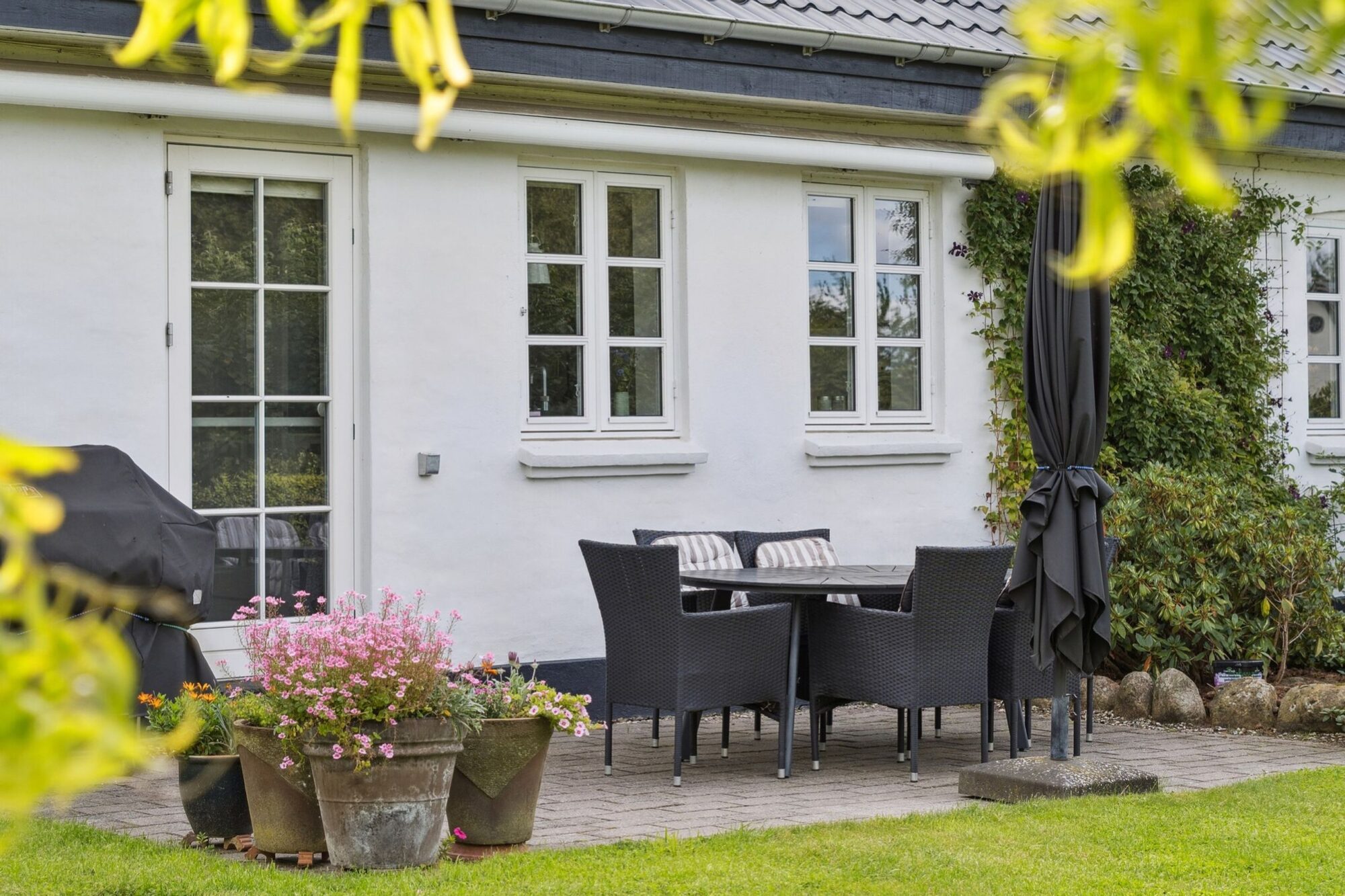 Når man ankommer til gården, er der lavet en præsentabel gårdsplads og et stort, flot haveanlæg, som danner dejlige rammer for udelivet. Have har flere solterrasser, og der er ligeledes et afsnit med køkkenhave, og ikke mindst plads til fodboldbane mm.
