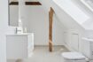 På førstesalen finder du en rummelig opholdsstue, endnu et badeværelse samt to gode værelser. Det ene værelse har udgang til en stor tagterrasse, hvorfra udsigten over Roskilde Fjord ganske enkelt er betagende.