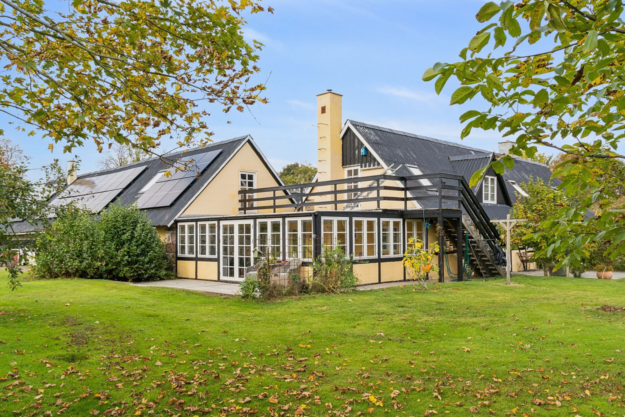 Den store have ligger ugeneret og er smukt anlagt med gamle træer, blomsterbede, terrasser og et område med køkkenhave. Ejendommen opvarmes med pillefyr og har solceller samt gulvvarme i størstedelen af boligerne.