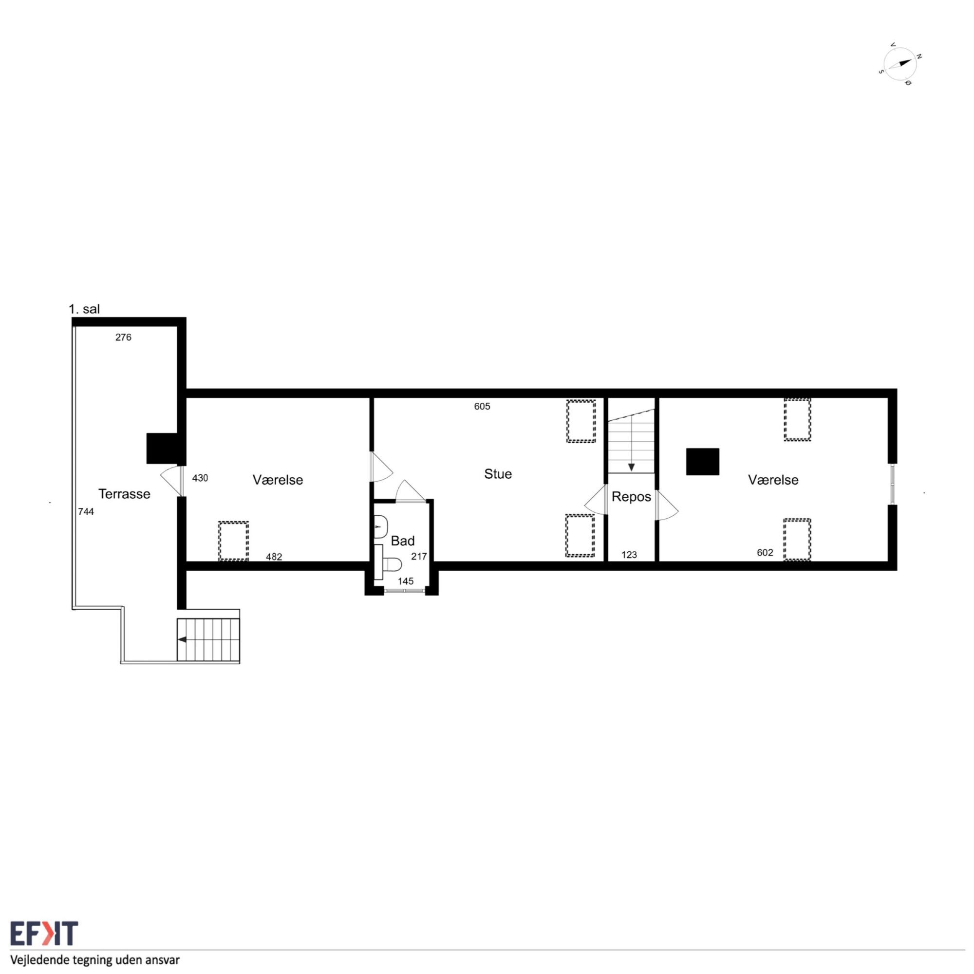 Bolig 2 indeholder køkken og stue i et, værelse, badeværelse samt toilet.