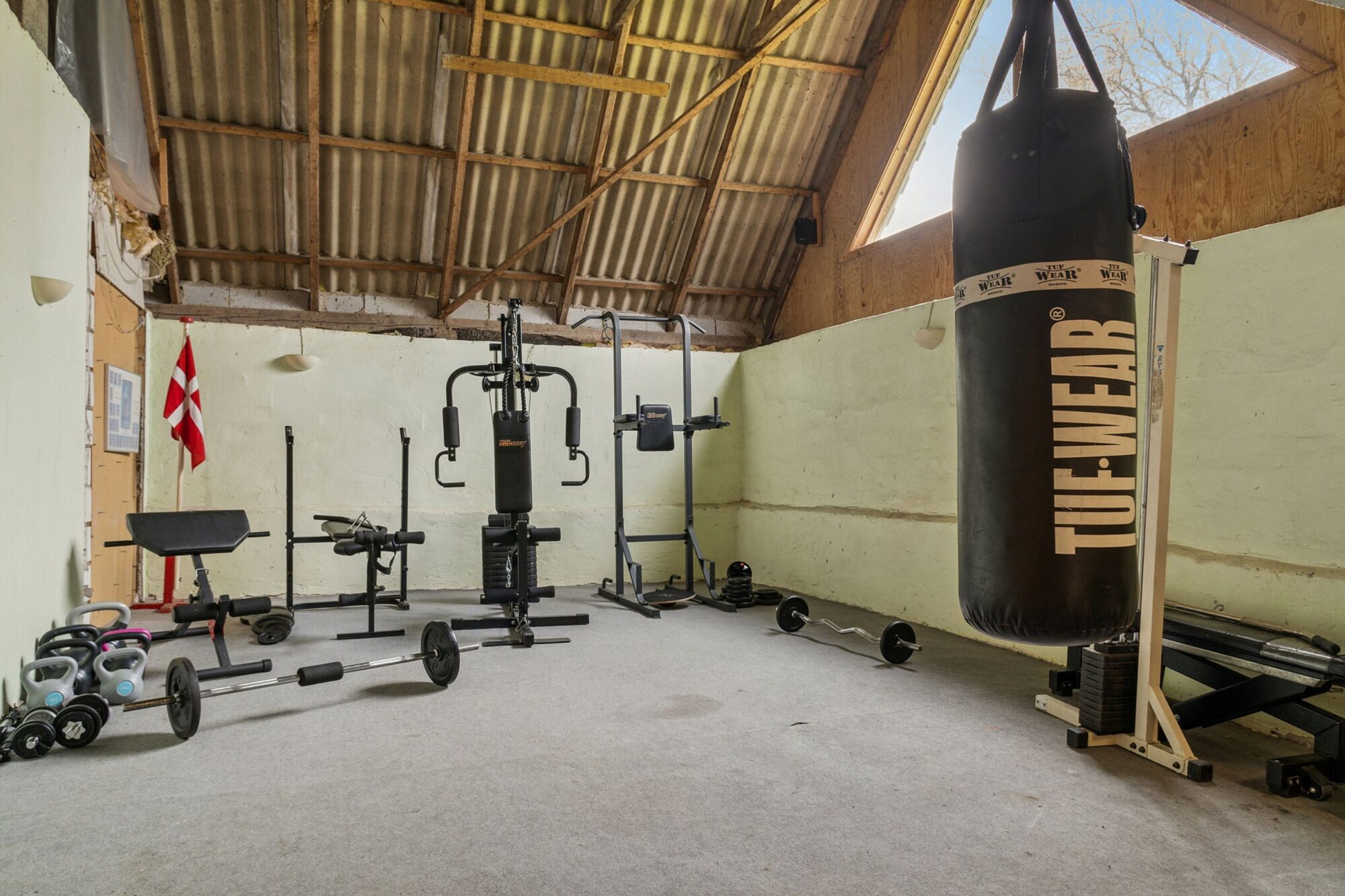 Ejendommens udlænger udgør omkring 400 m² og rummer gildestue, fyrrum, værksted og tidligere stalde, som i dag bruges til opbevaring – men som byder på mange muligheder for hobby, værksted eller mindre dyrehold.
