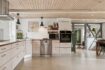 Stuehuset byder på badeværelse, pænt bryggers, flere værelser, stort køkken med spiseplads og udgang til haven. Herudover en lys stue med brændeovn samt en virkelig hyggelig udestue med kampestensvæg, brændeovn og fransk dør ud til haven. På 1. sal er der repos, stue samt to rummelige værelser, hvor det ene med udgang til altan og skøn udsigt over landskabet.