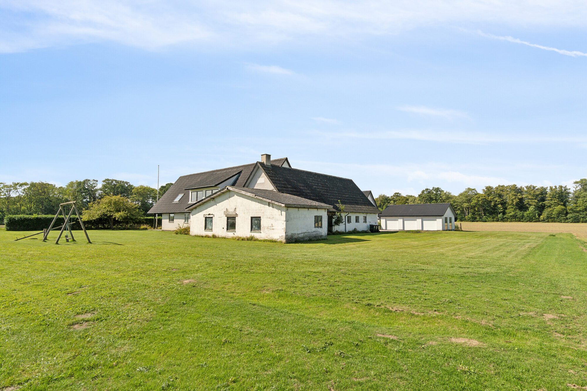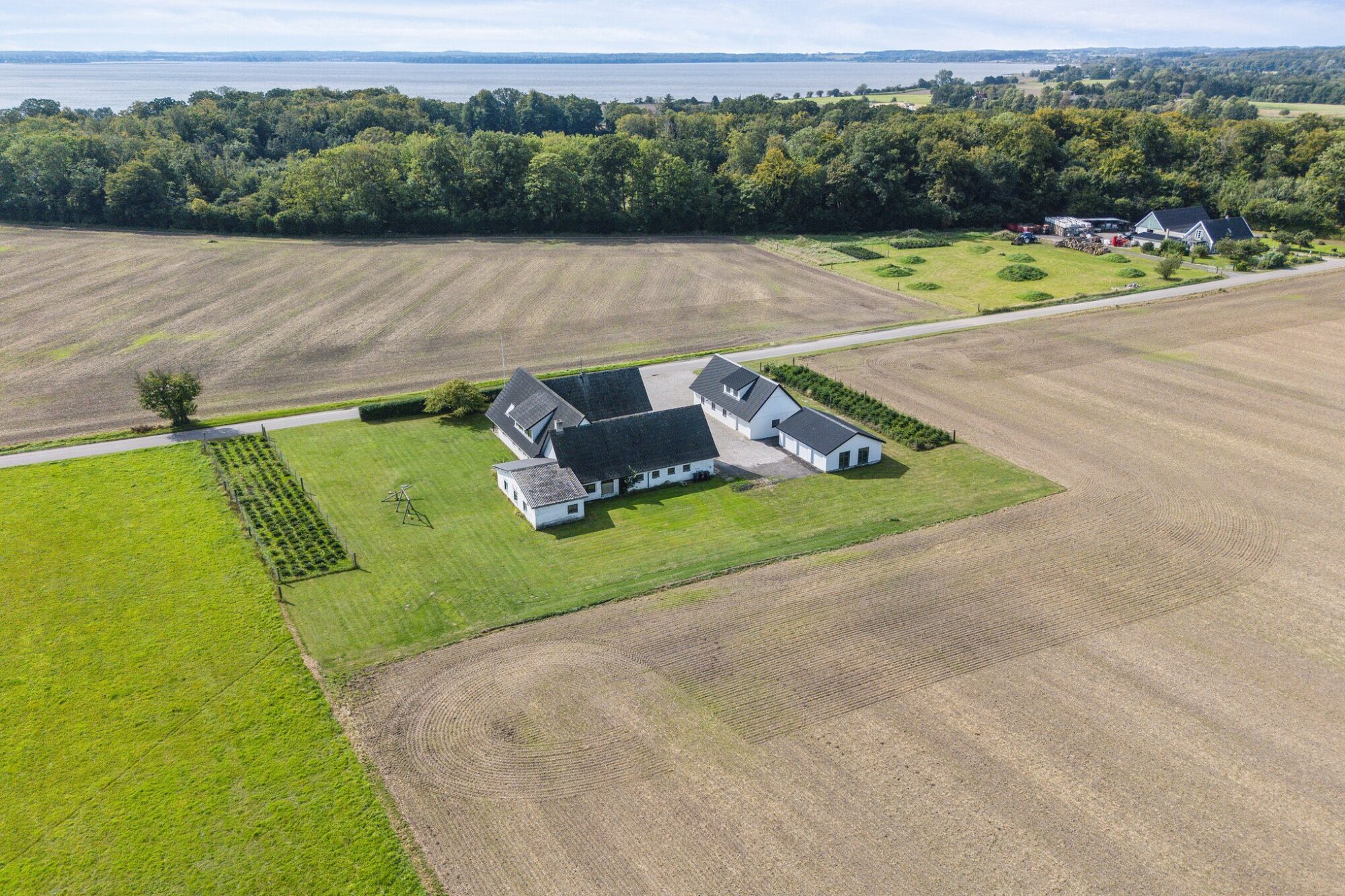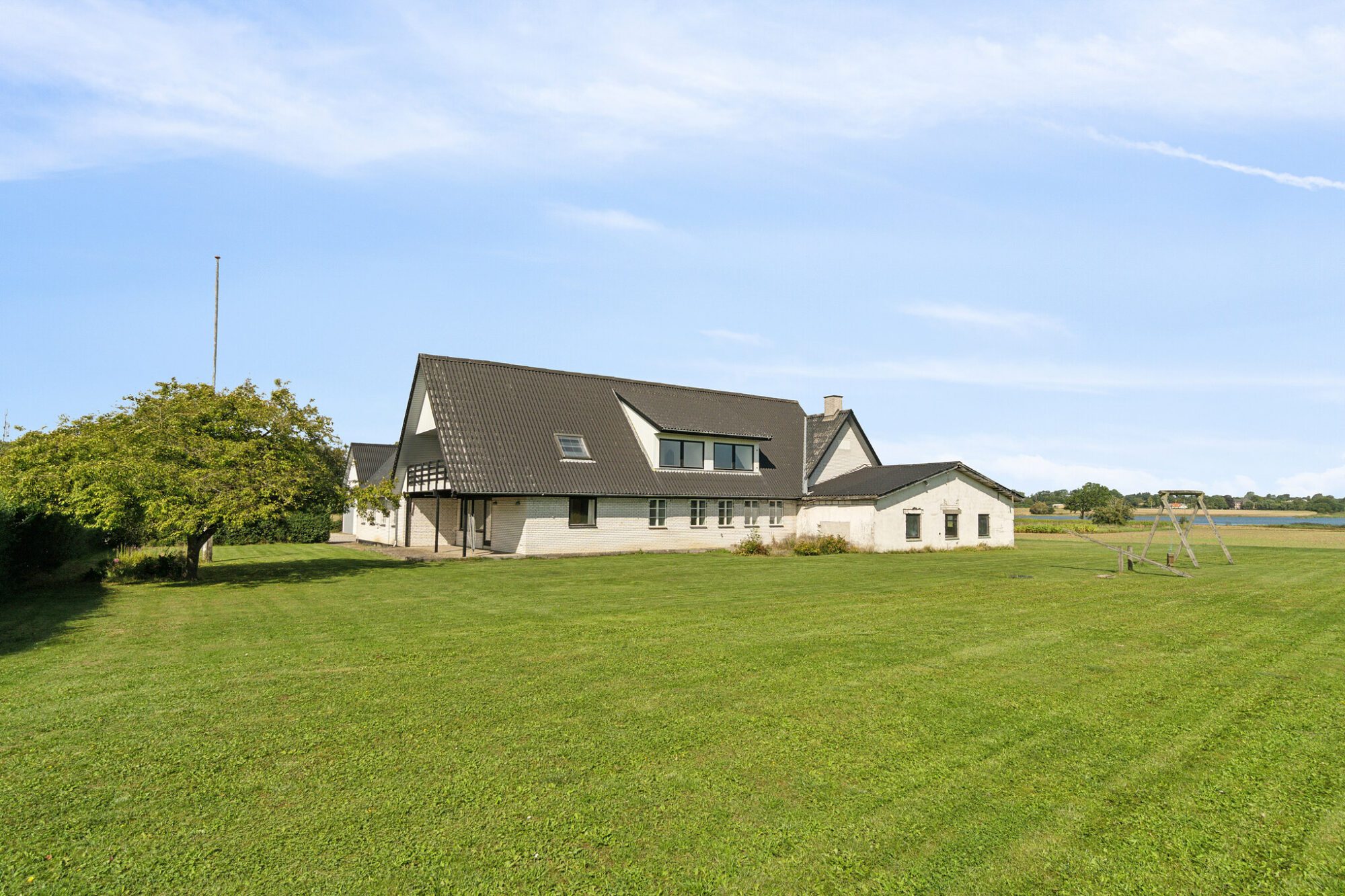 Huset byder på hele 303 m² bolig, som er opdelt i to boliger. Hvis drømmen er at bo sammen, kan ejendommen være oplagt for to familier eller generationer. Udover stuehuset er der gildesal, lade samt en garage med en god udsigt over land og vand – brugbare udbygninger, som kan rumme familiens aktiviteter.