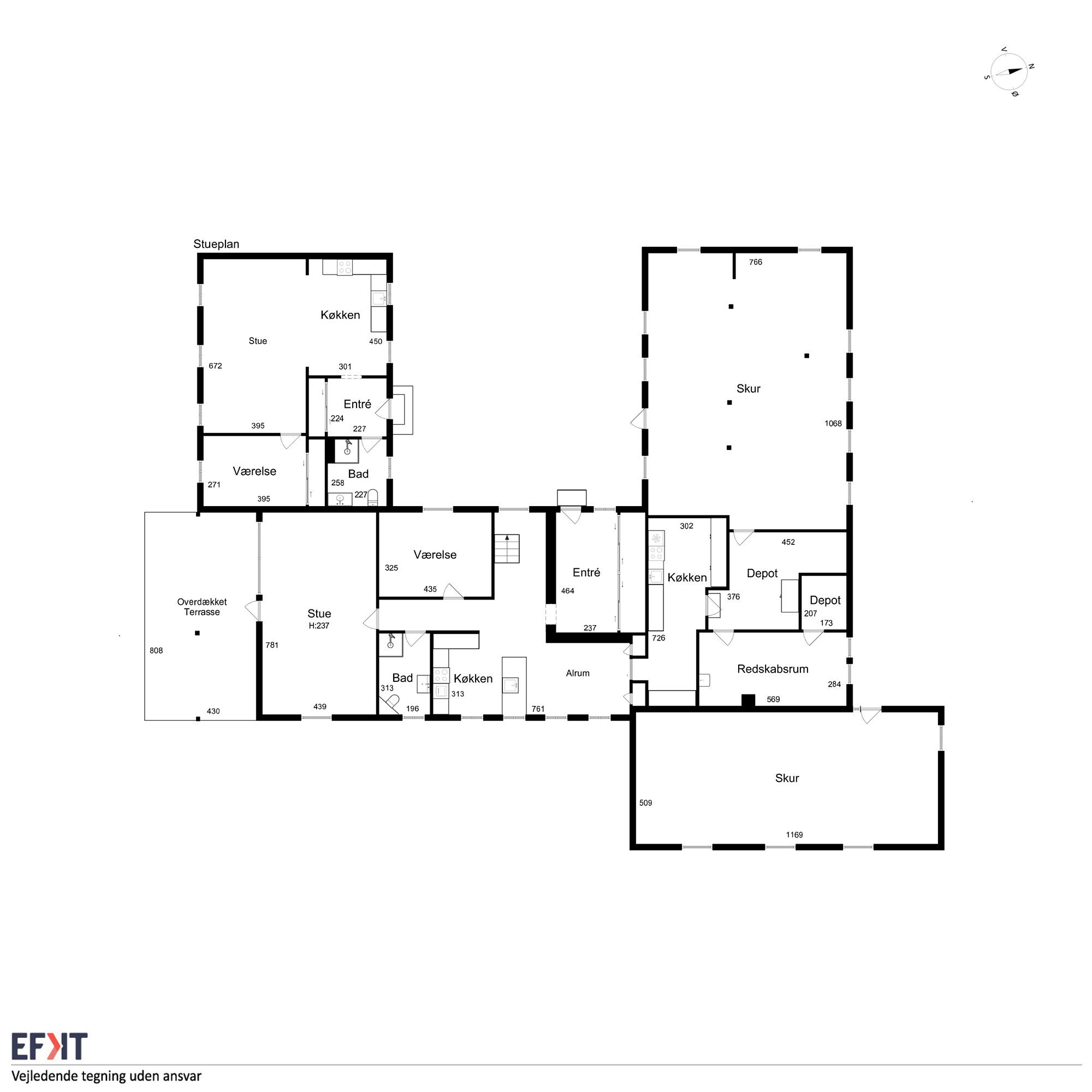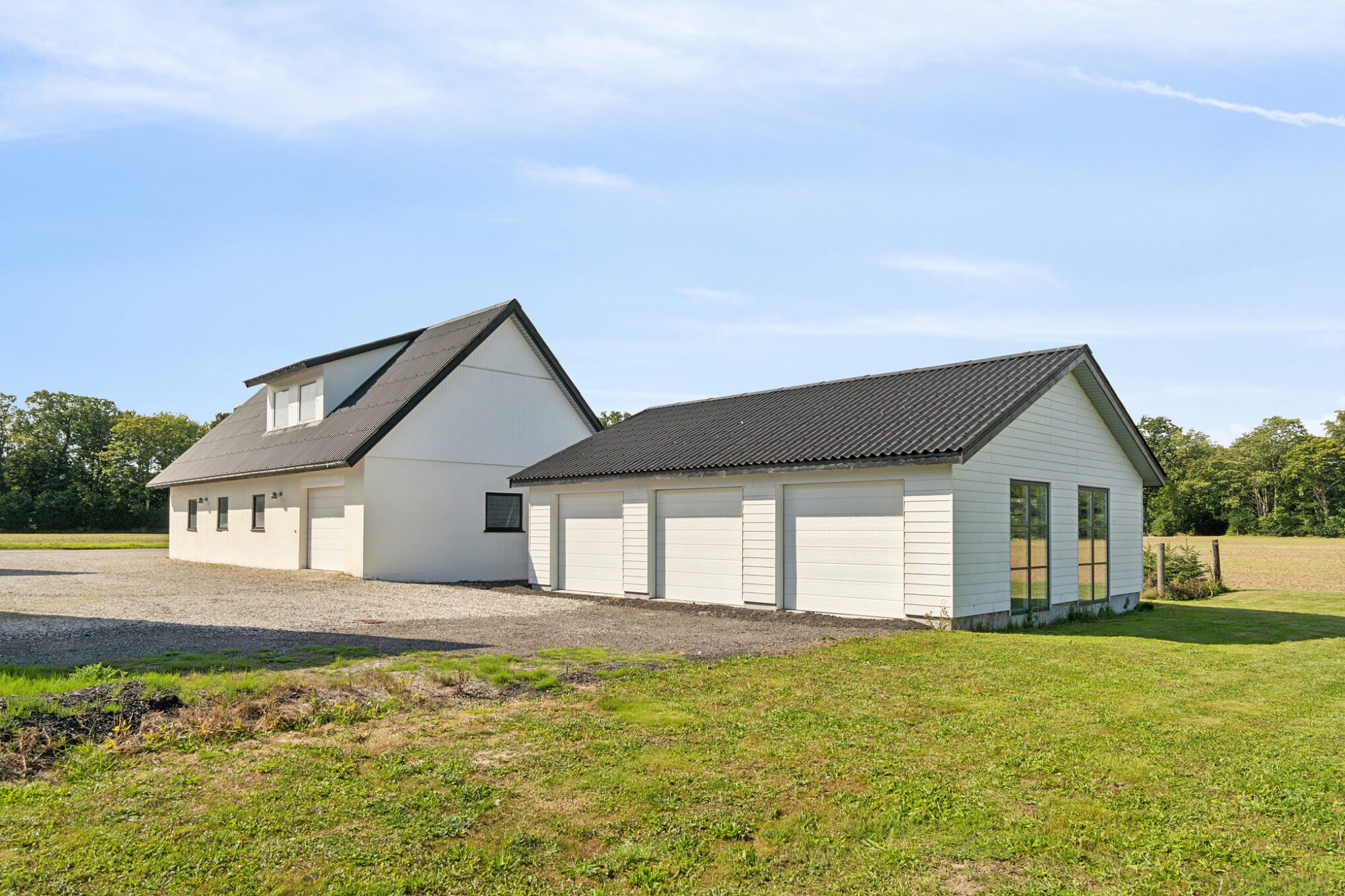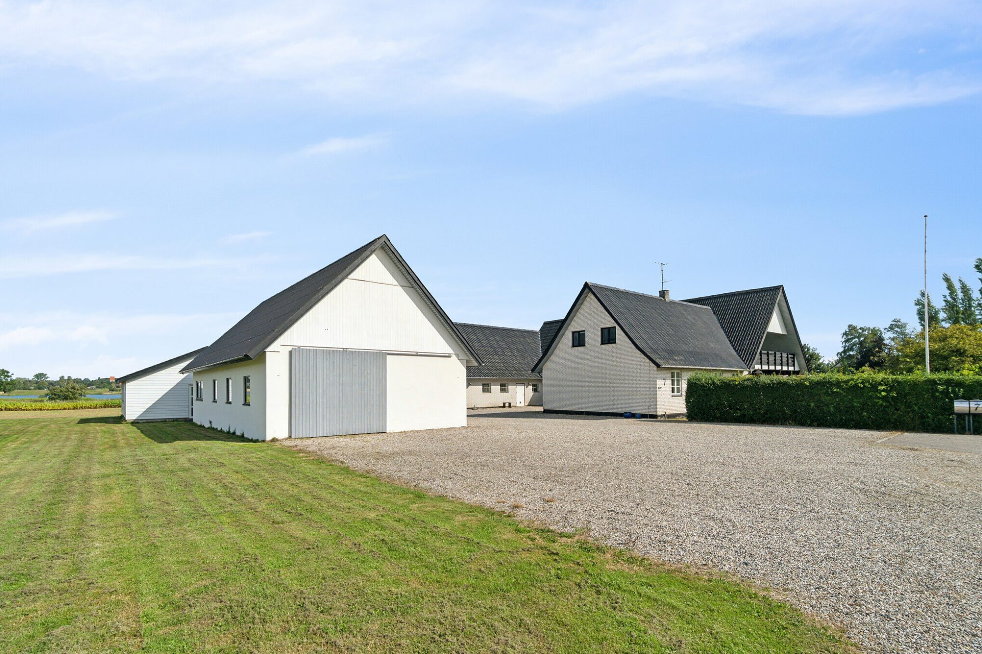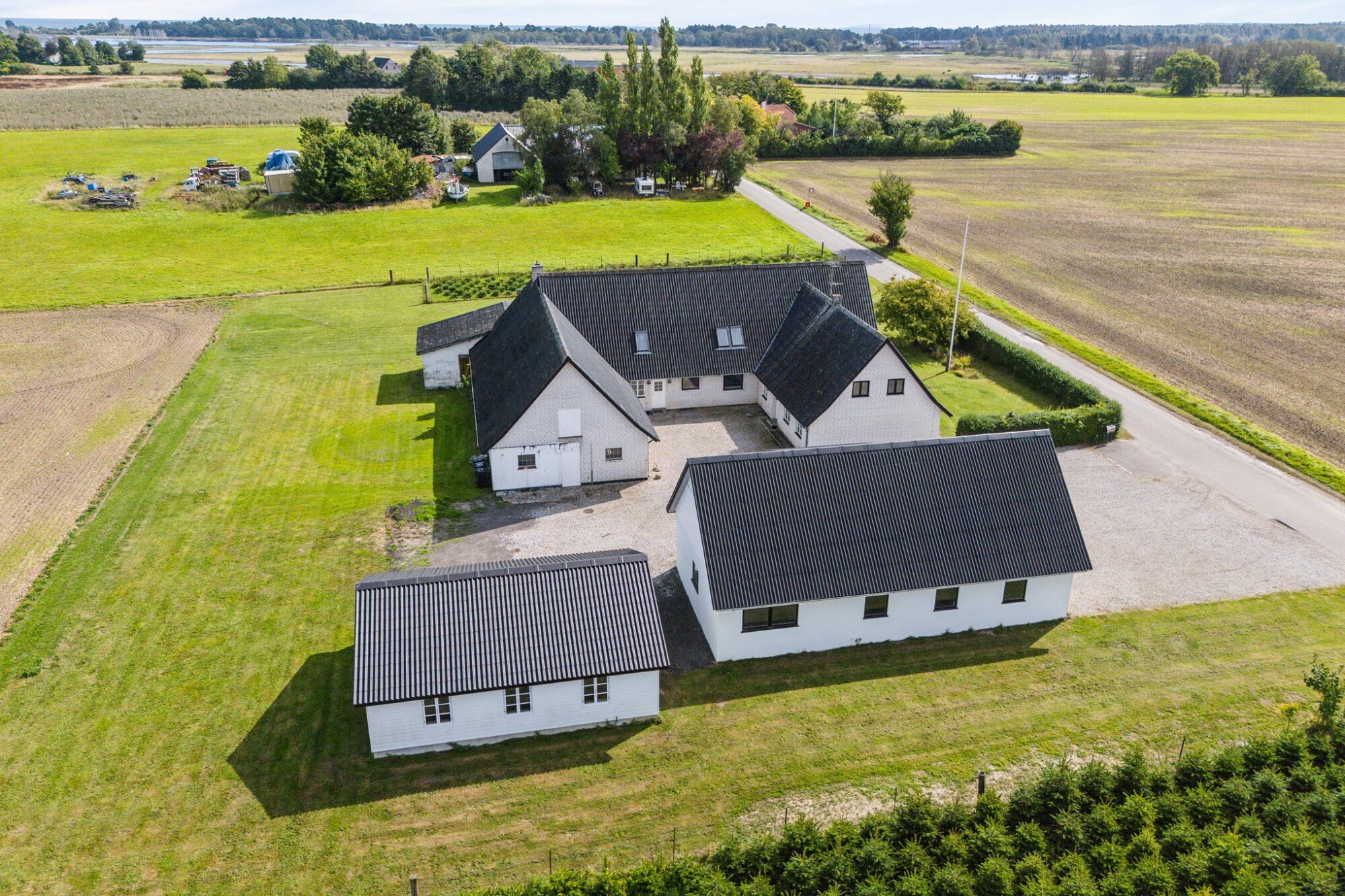 Huset byder på hele 303 m² bolig, som er opdelt i to boliger. Hvis drømmen er at bo sammen, kan ejendommen være oplagt for to familier eller generationer. Udover stuehuset er der gildesal, lade samt en garage med en god udsigt over land og vand – brugbare udbygninger, som kan rumme familiens aktiviteter.
