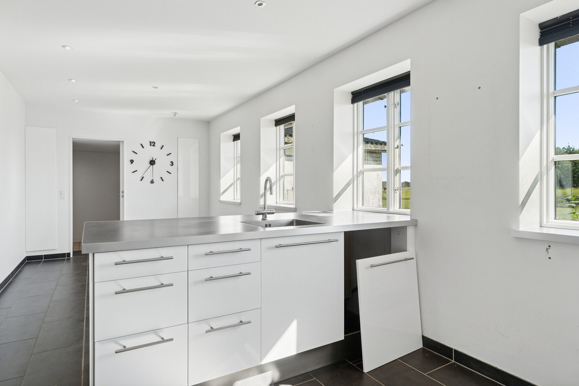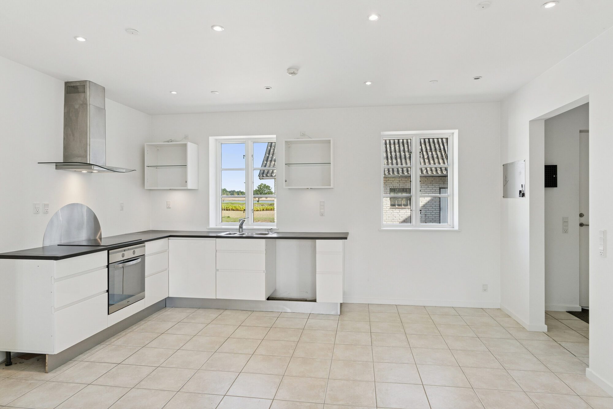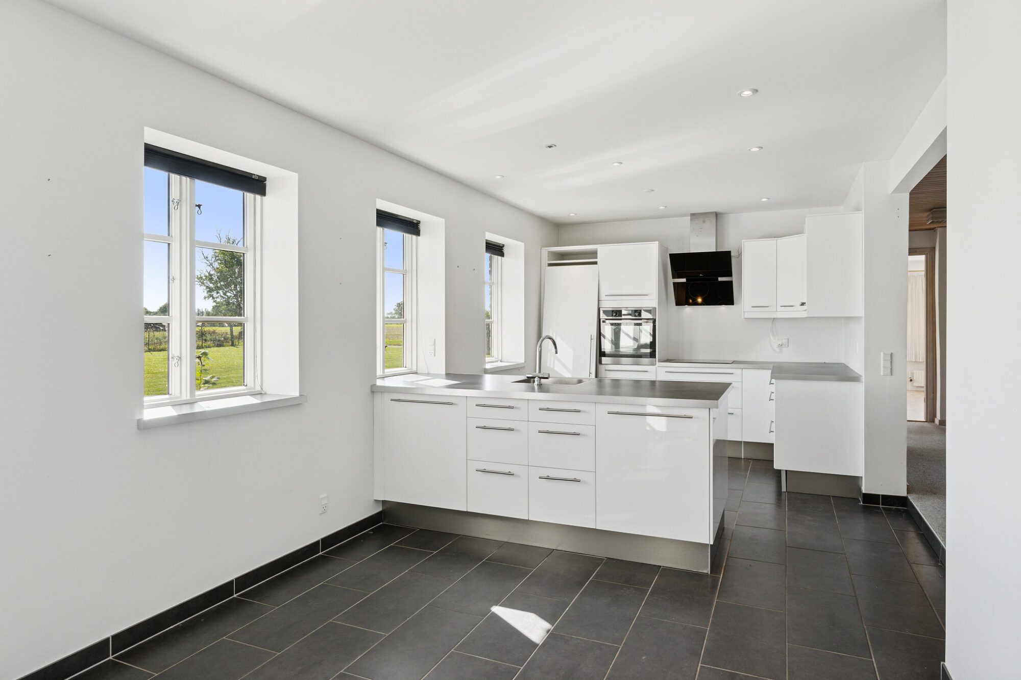 Udenfor venter den store grund på 5.000 kvm, hvor der er god plads til aktiviteter omgivet af åbne vidder og skøn natur.Daglige fornødenheder som skole, daginstitution og indkøb ligger inden for mindre end ni kilometer.