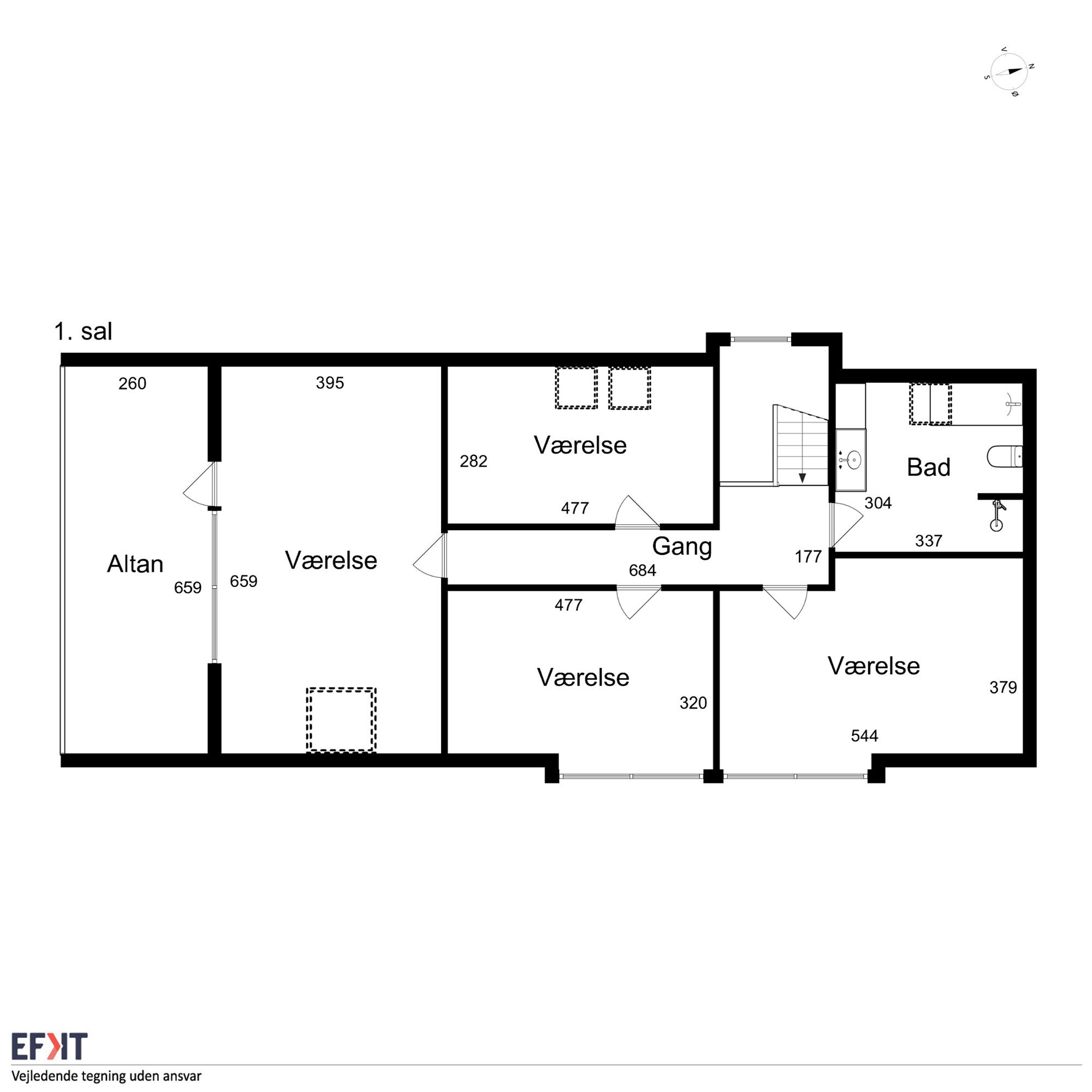 I bolig nr. 2 finder I et åbent opholdsrum, hvor køkken og stue er samlet i ét, samt et værelse og et badeværelse.