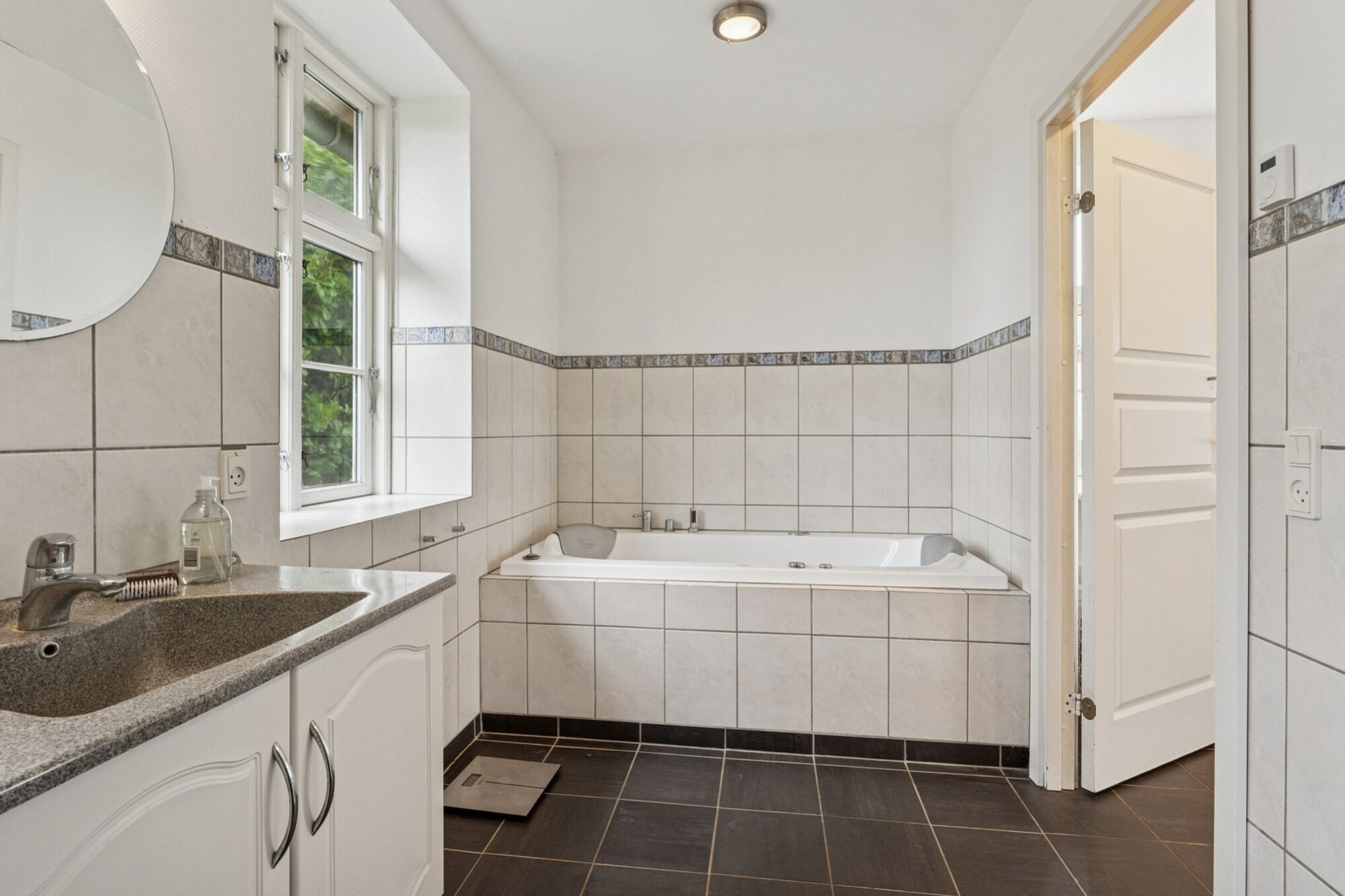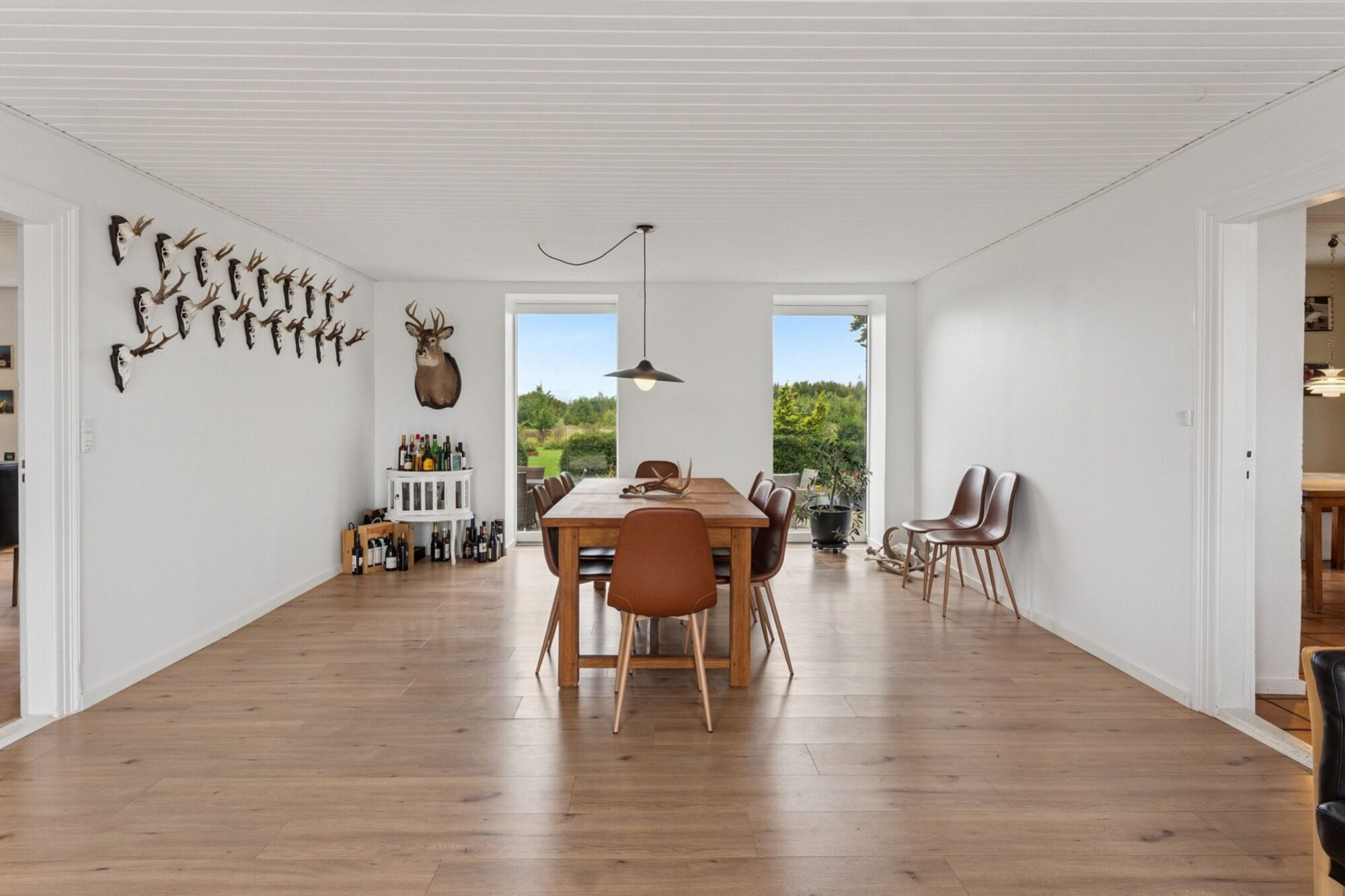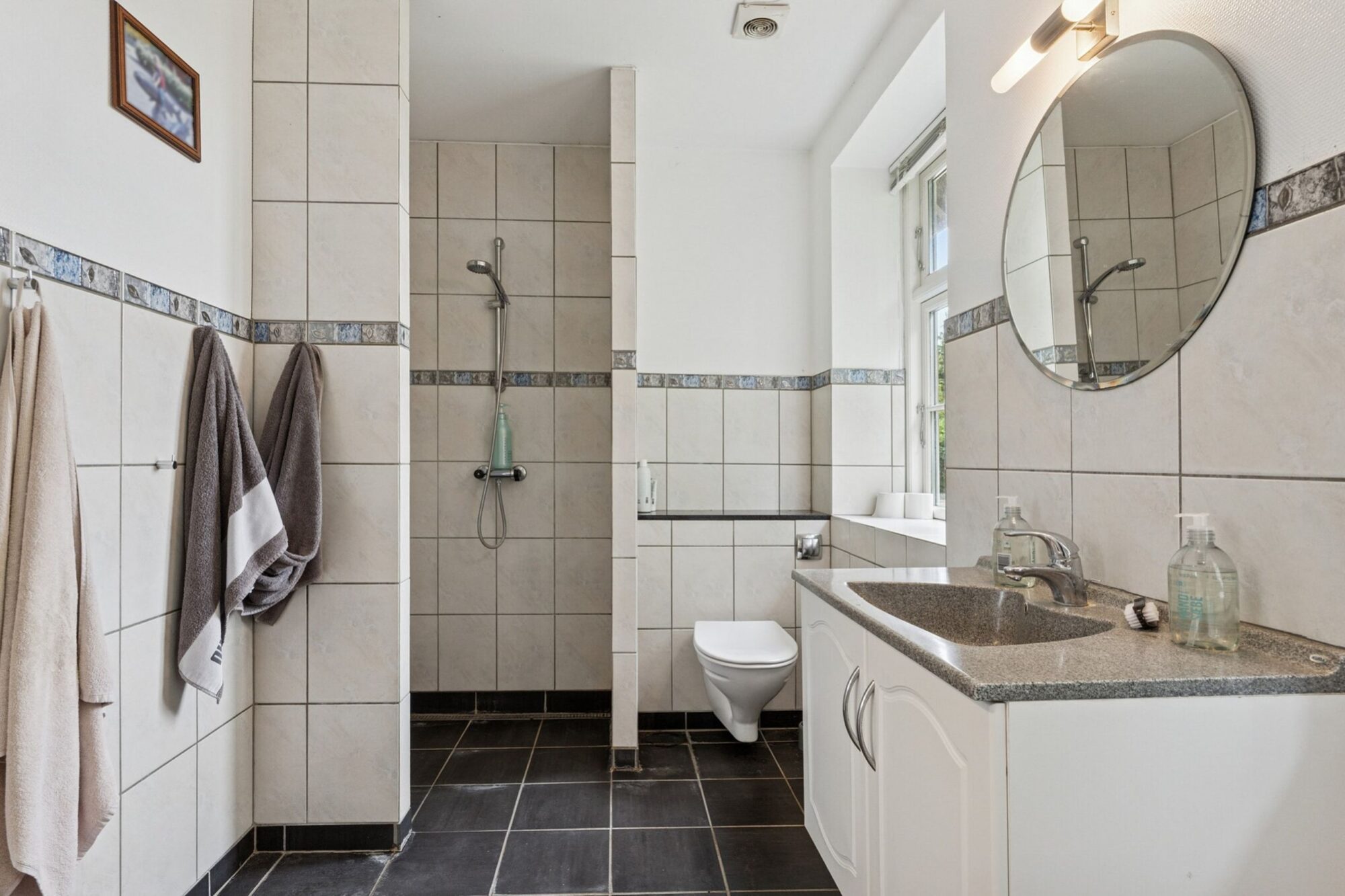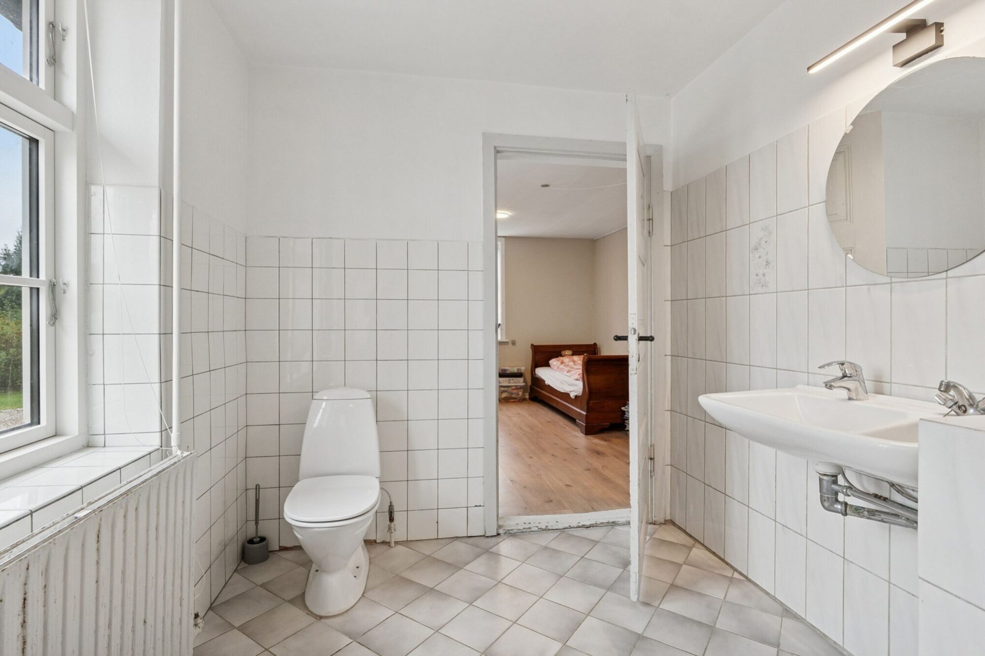 Stuehusets mange kvadratmeter indeholder et meget stort bryggers, badeværelse, spisekøkken samt flere stuer og værelser – og endnu et badeværelse. 1. salen rummer også en stue samt flere værelser. Fra huset er der udgang til en stor terrasse med udsigt over folde og skov.