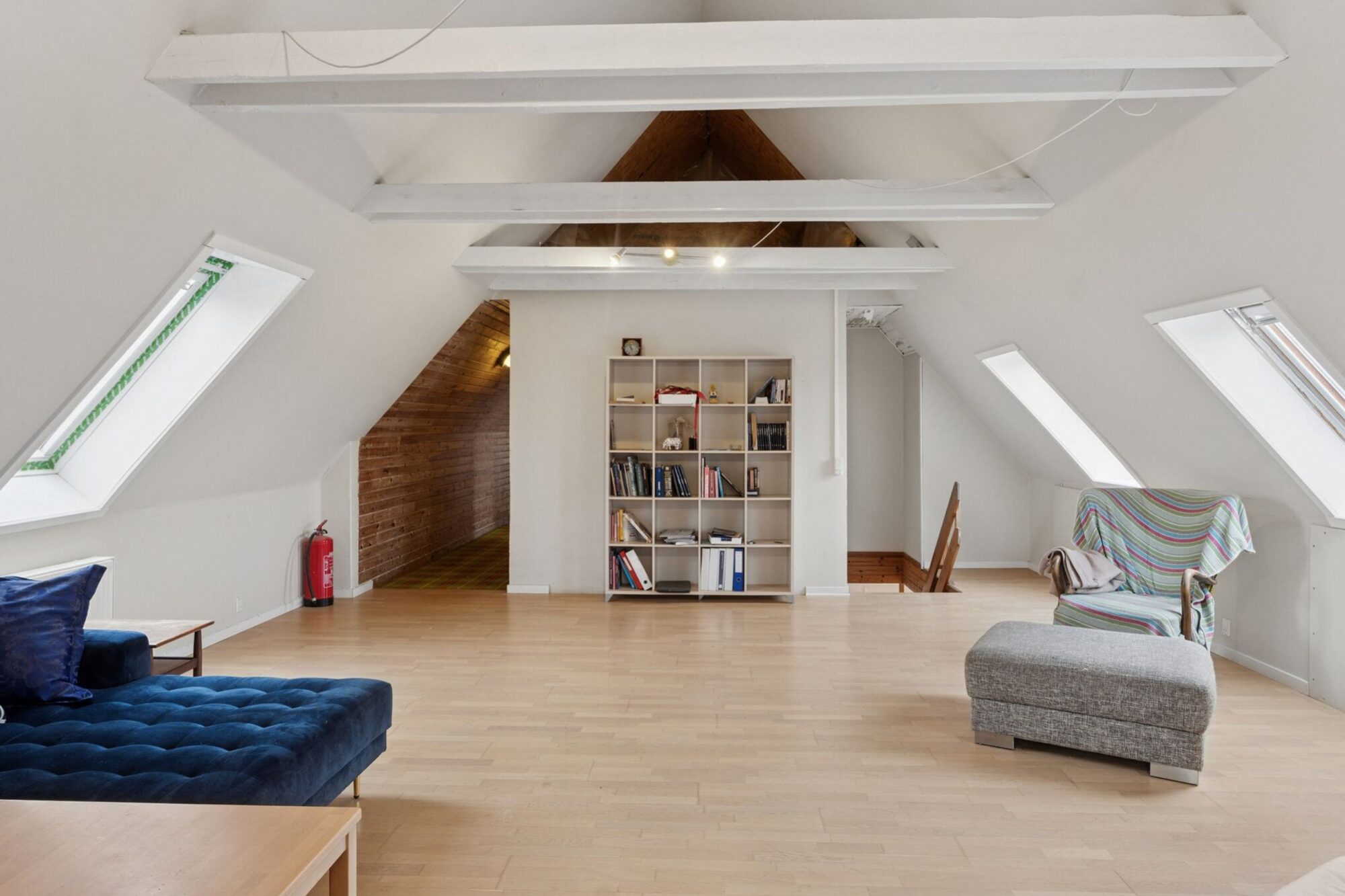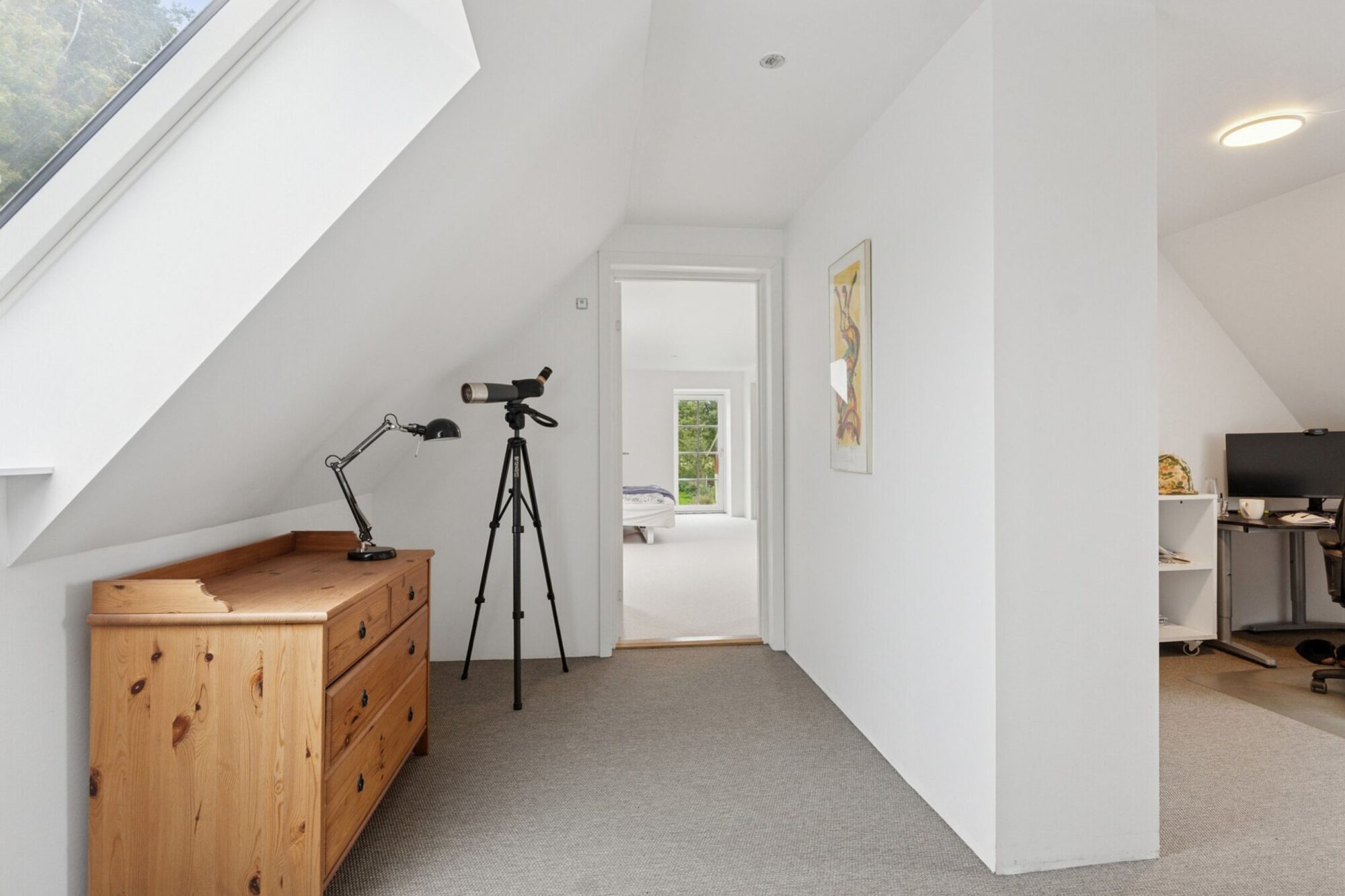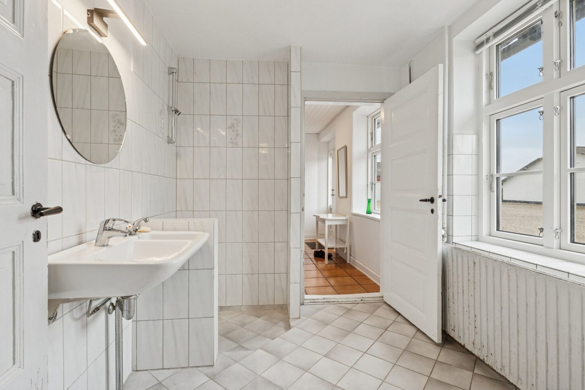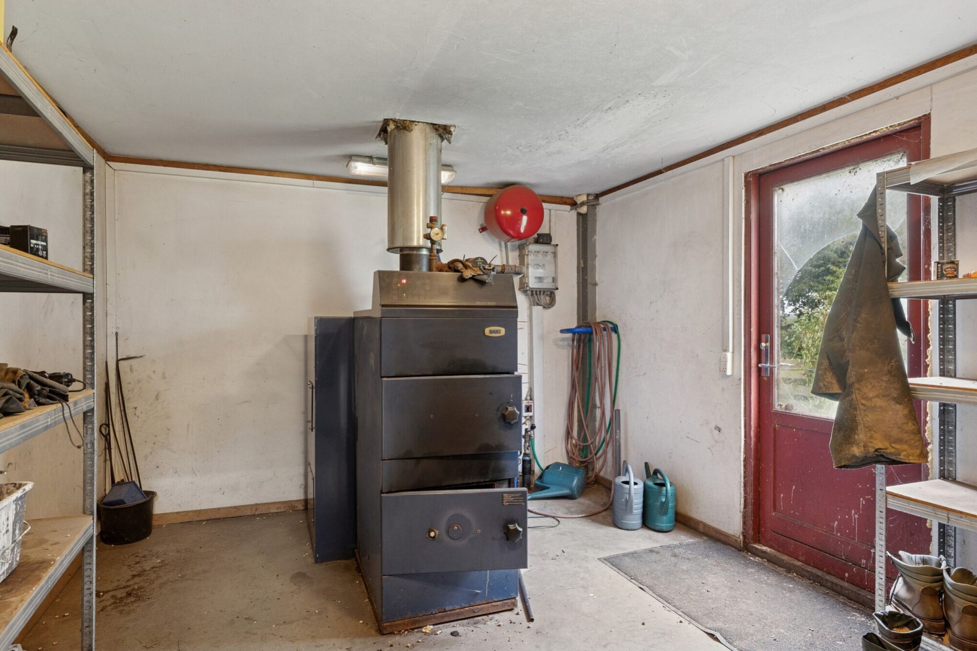 Stuehusets mange kvadratmeter indeholder et meget stort bryggers, badeværelse, spisekøkken samt flere stuer og værelser – og endnu et badeværelse. 1. salen rummer også en stue samt flere værelser. Fra huset er der udgang til en stor terrasse med udsigt over folde og skov.