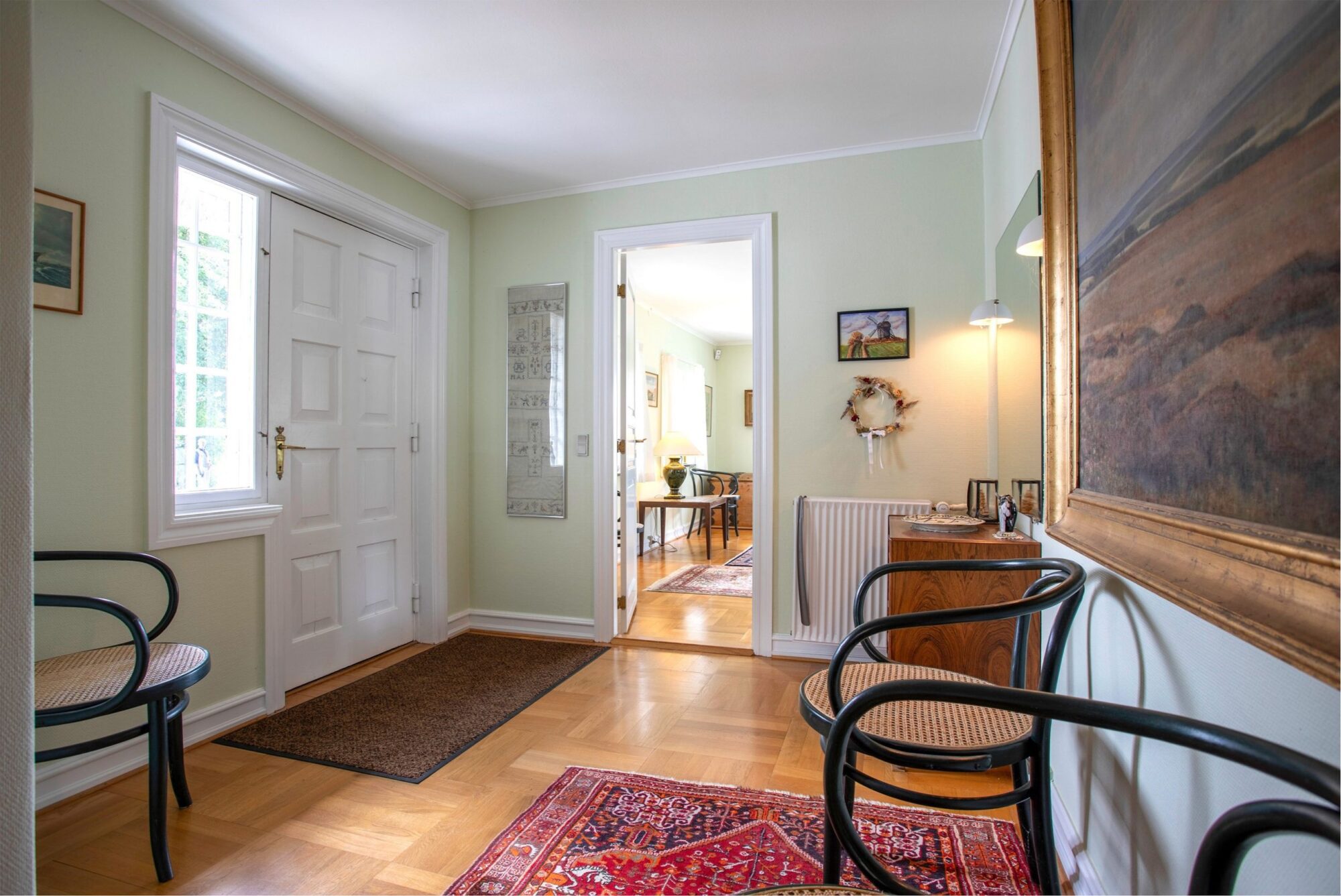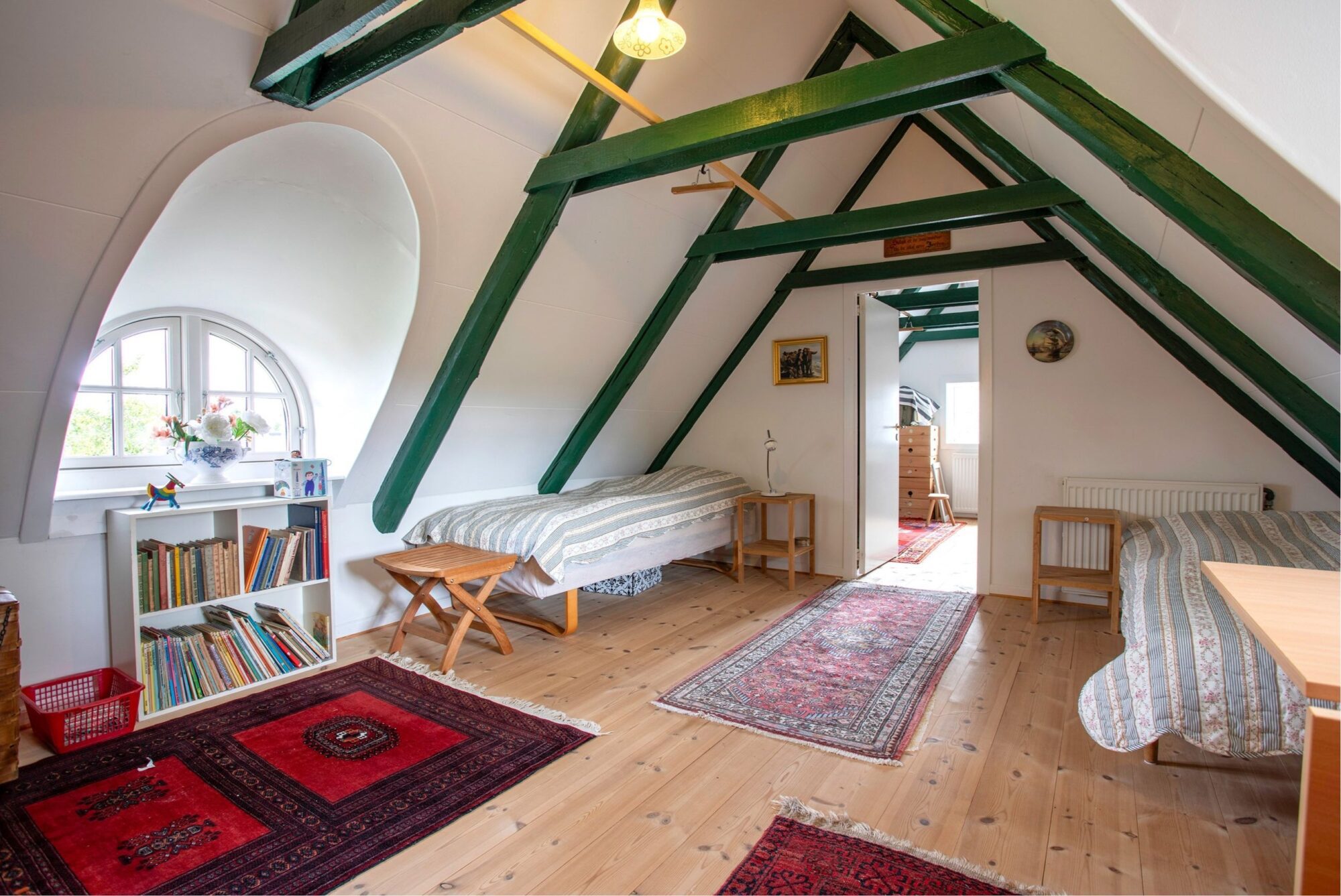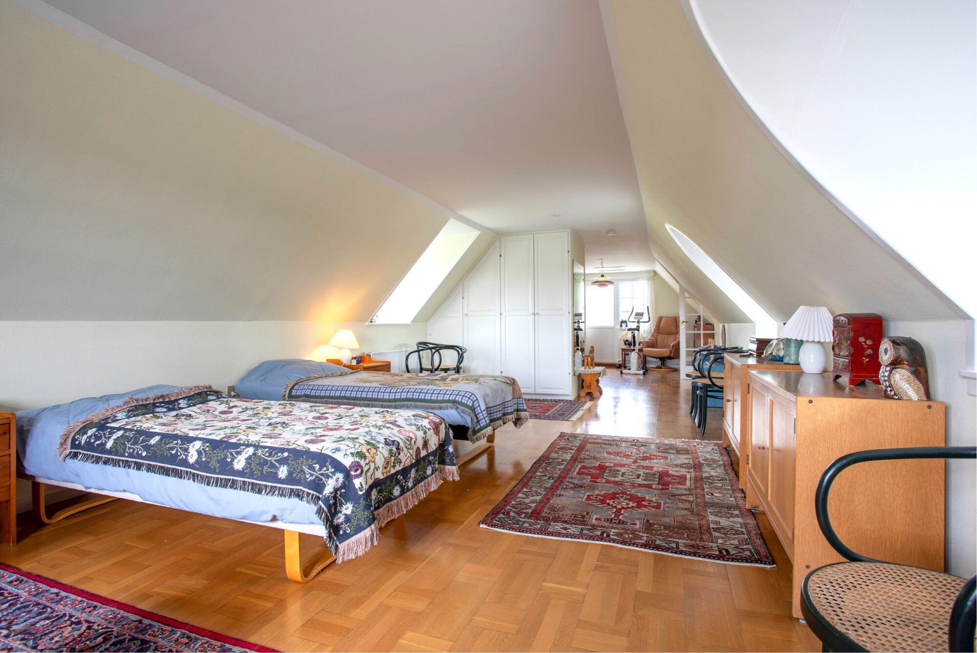 På 1.salen er der indrettet et repos med adgang til to værelser, hvor det ene er et gennemgangsværelse, samt et stort soveværelse med udgang til en terrasse.