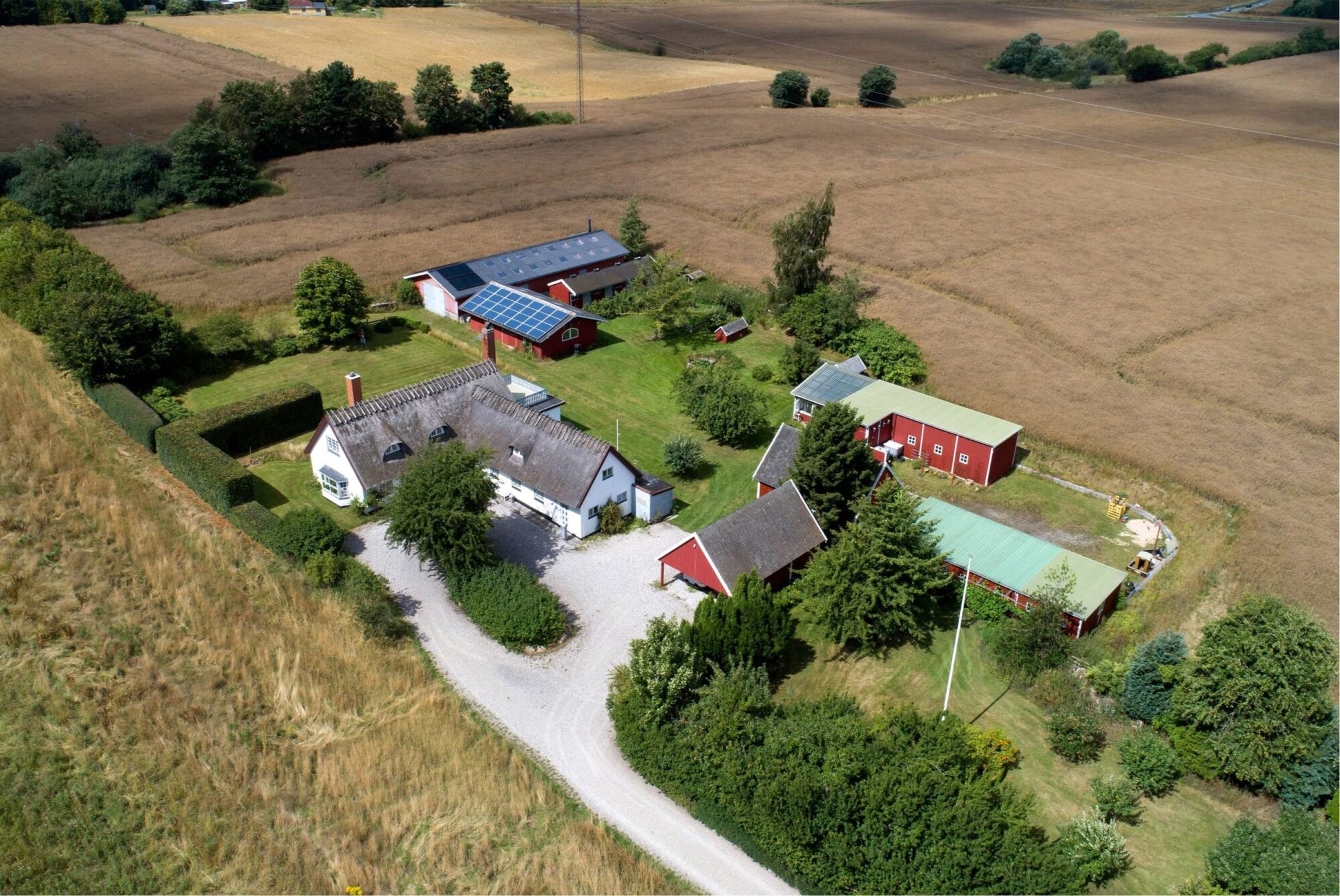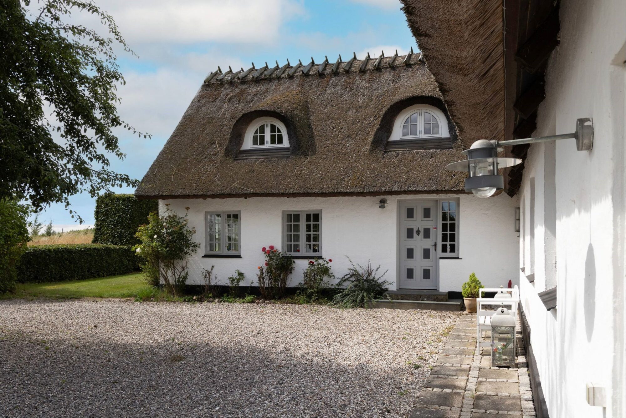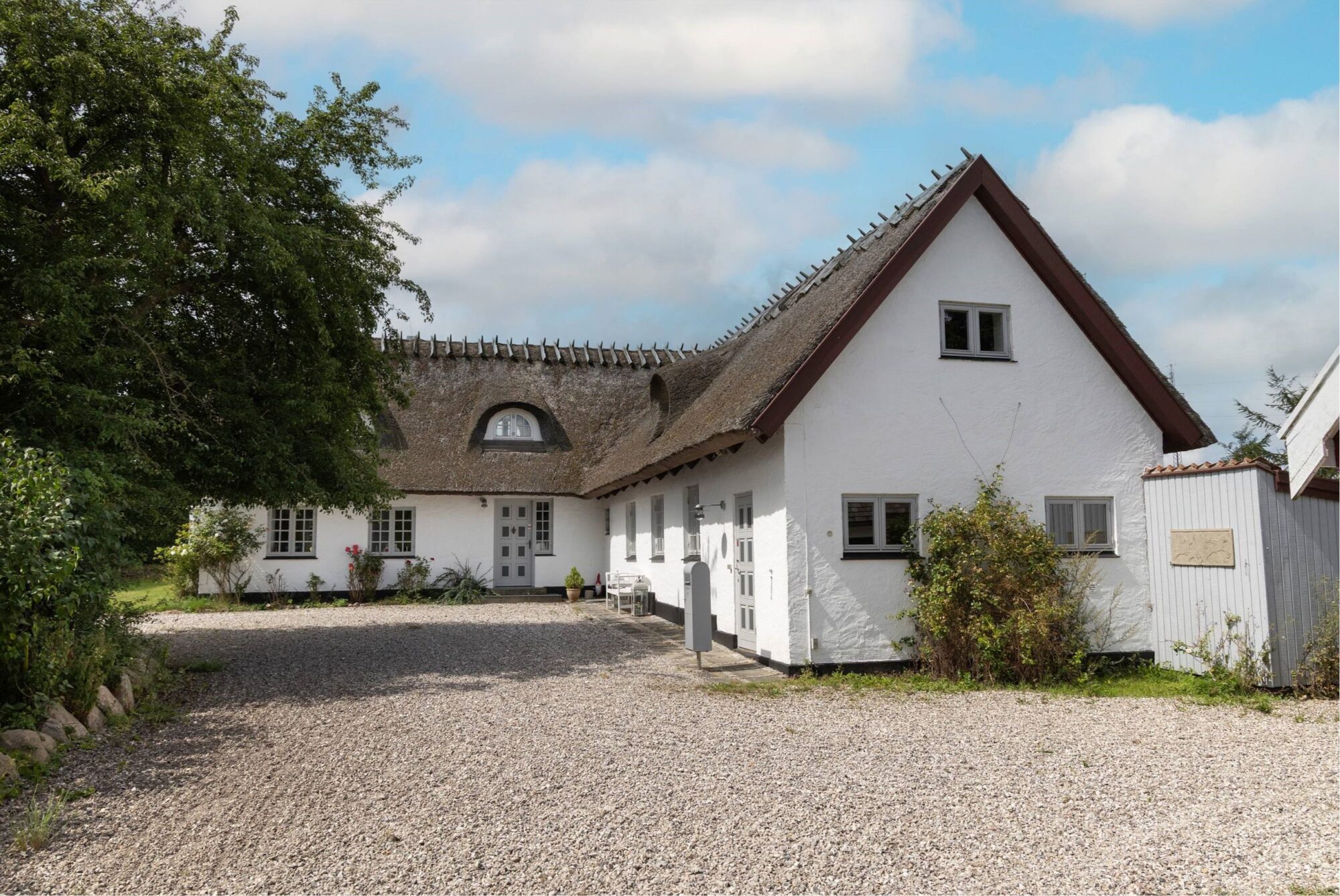 Charmerende stråtækt stuehus med sjæl og atmosfære fra 1901. Stuehuset tilbyder et boligareal på 245 m2 i 2 plan. Stuehuset er renoveret fra A til Z tilbage i 1990, hvor nuværende ejer købte ejendommen. Det rummer familien og hvor end du kikker ud, er der en skøn udsigt til haven eller markerne.