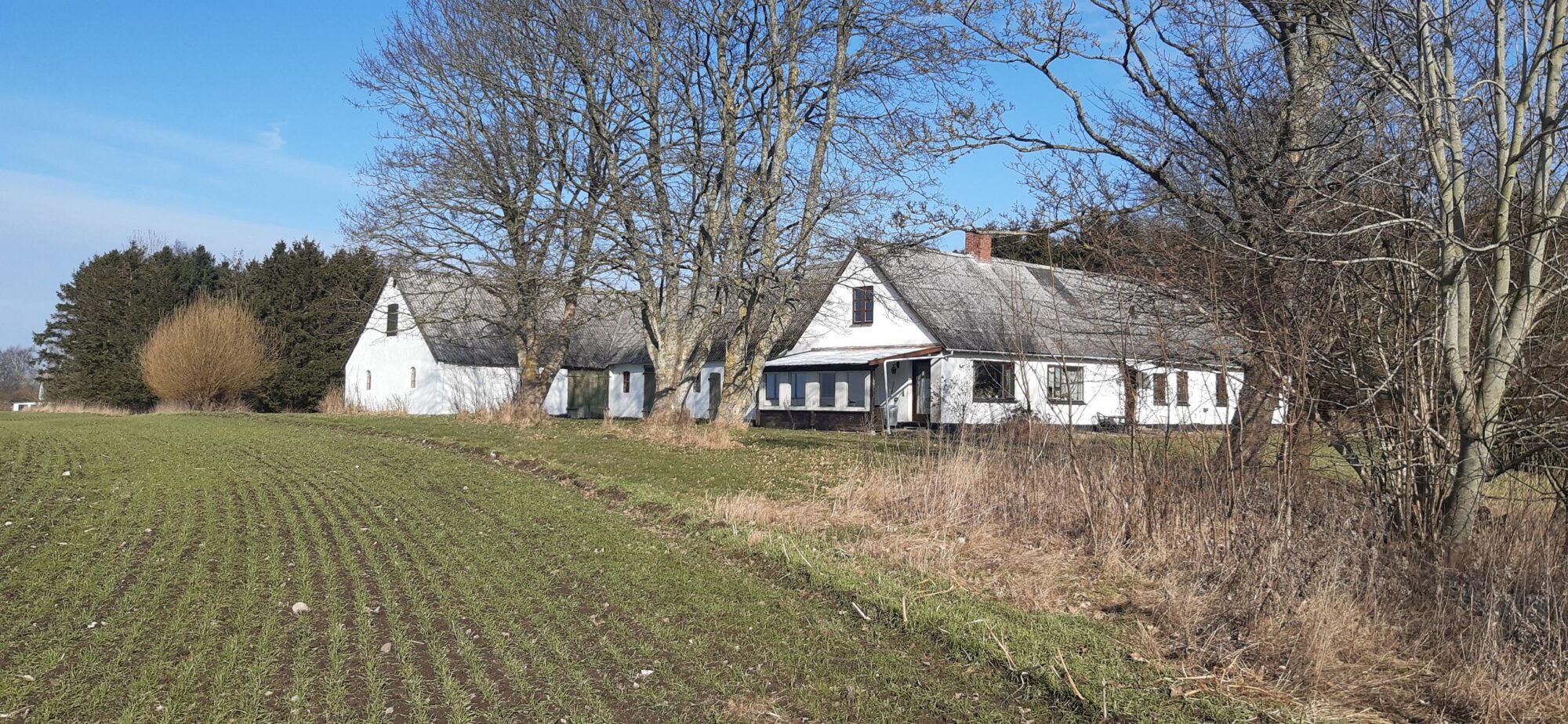 Gården er firlænget og ligger forenden af egen private vej. Her er ingen forstyrrende trafik.