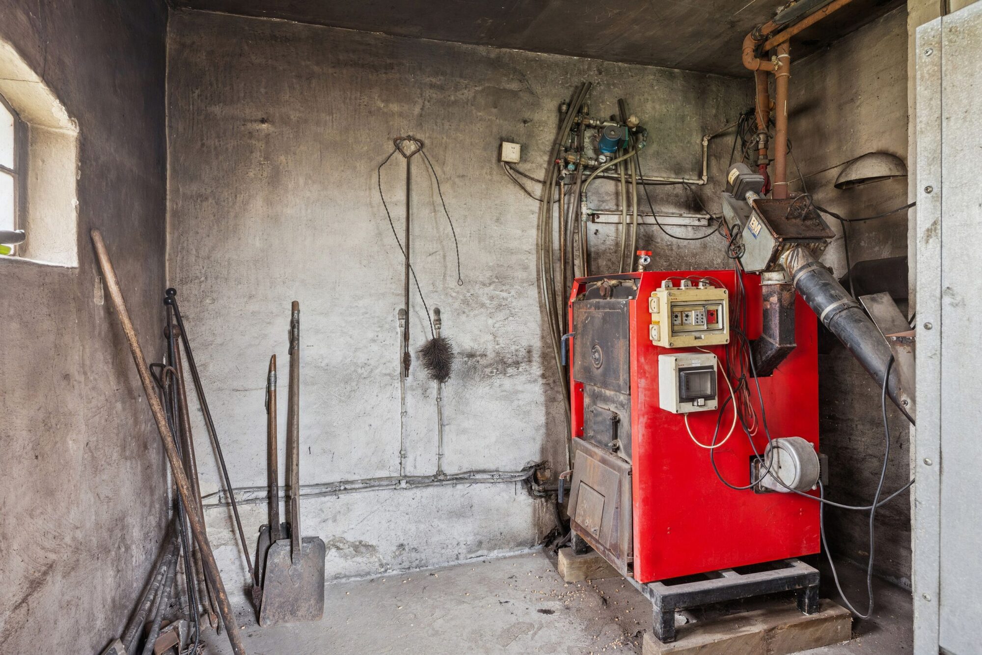 Huset opvarmes med pillefyr, der er vand fra Skamstrup Vandværk, og afløb etableres til nyt nedsivningsanlæg i marts 2026 for sælgers regning.