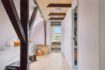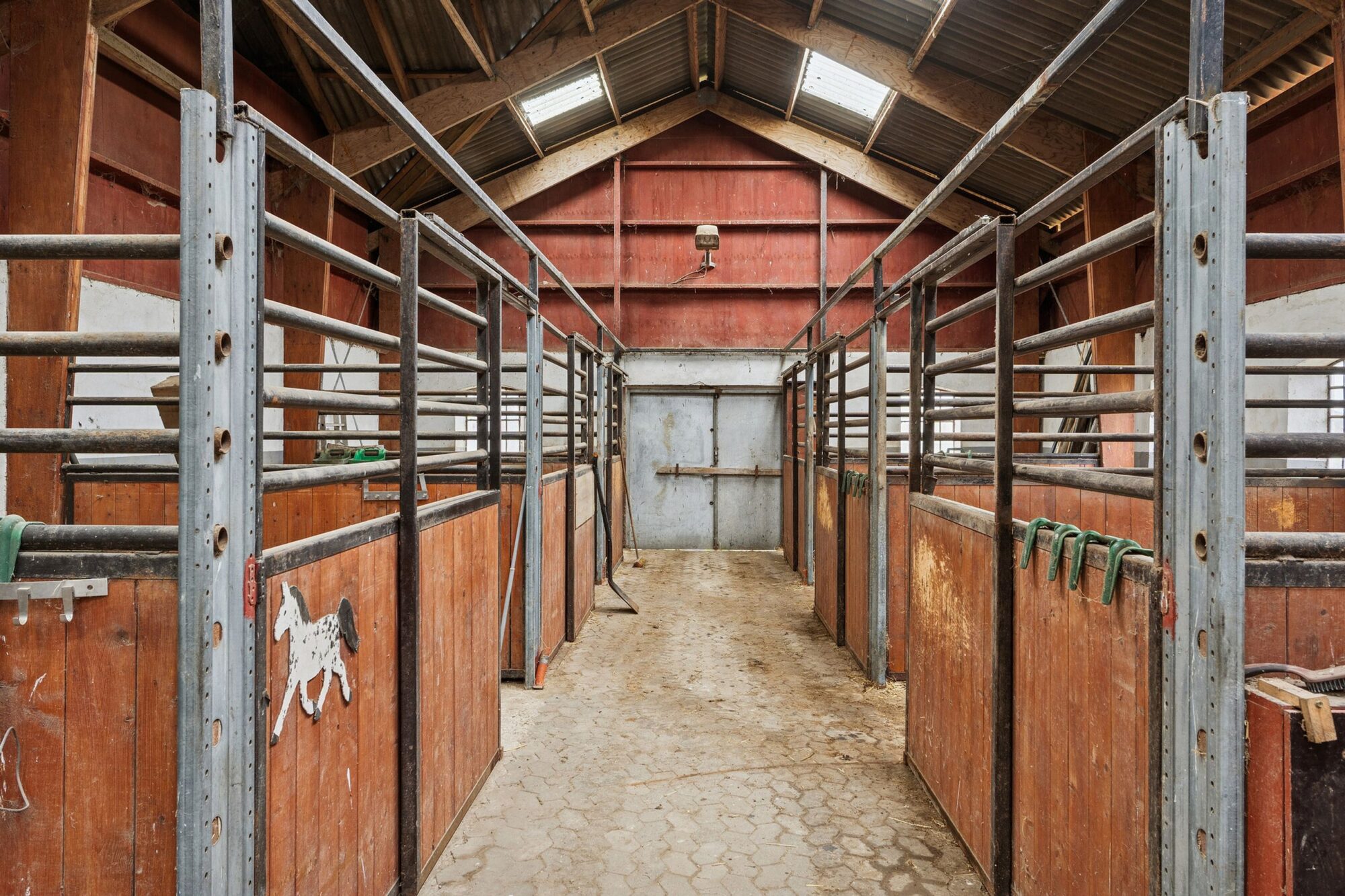 På 1. sal er der repos, toilet, to værelser samt et soveværelse, hvor de store vinduer giver en skøn udsigt over det omkringliggende landskab.Af de 220 kvm bolig er kun 140 kvm registreret i BBR.